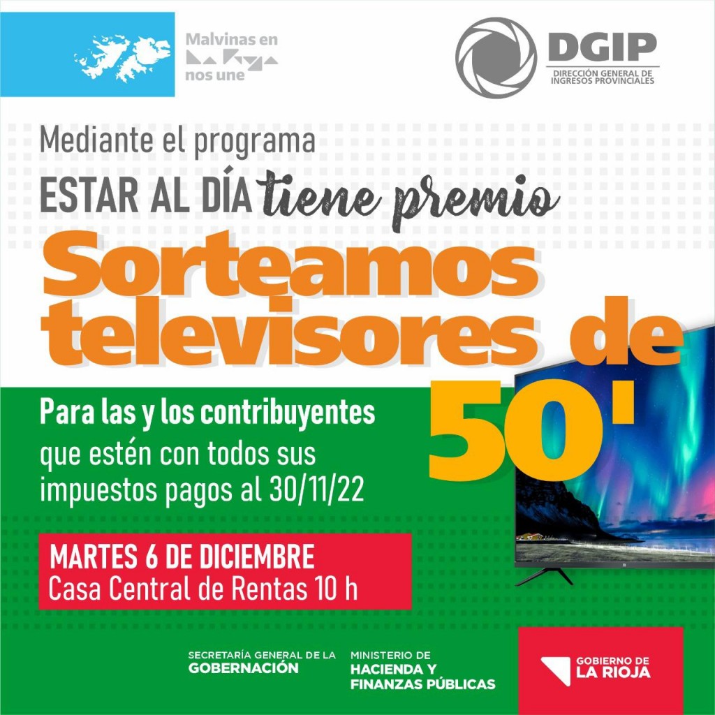 El Ministerio de Hacienda y Finanzas Públicas junto a la Secretaría General de la Gobernación, por medio del Programa “Estar al día tiene premio" comunican que se llevará a cabo un nuevo sorteo de televisores Smart de 55¨