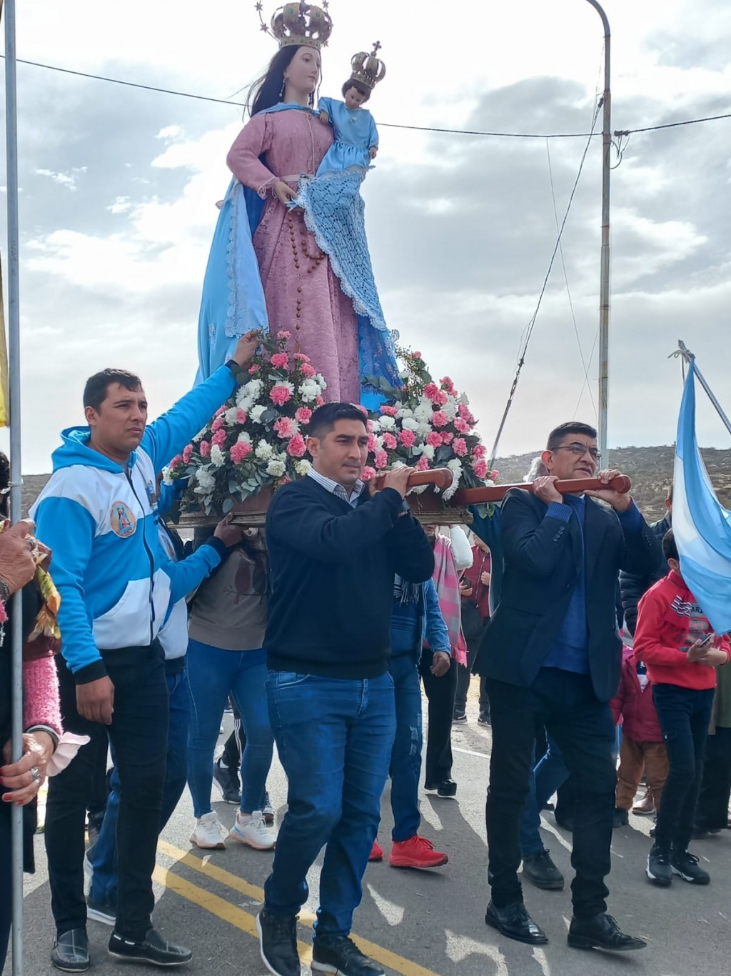 La festividad religiosa comenzo a las 11 con el encuentro de la Virgen del Rosario con su hijo en el arco de entrada a Tama.Despues marcharon en procesion hasta la escuela N 80 en donde al mediodia se realizo la solemne celebracion en el patio de la institucion educativa con la presencia del intendente del Departamento Ricardo Romero.En su homilia el Padre Mario Gonzalez agradecio el poder compartir nuevamente esta procesion tan cara a los sentimientos de los que habitan este suelo y pidio por la paz en el mundo entero.Luego de finalizada la misa hubo bingo y venta de locro y empanadas.
