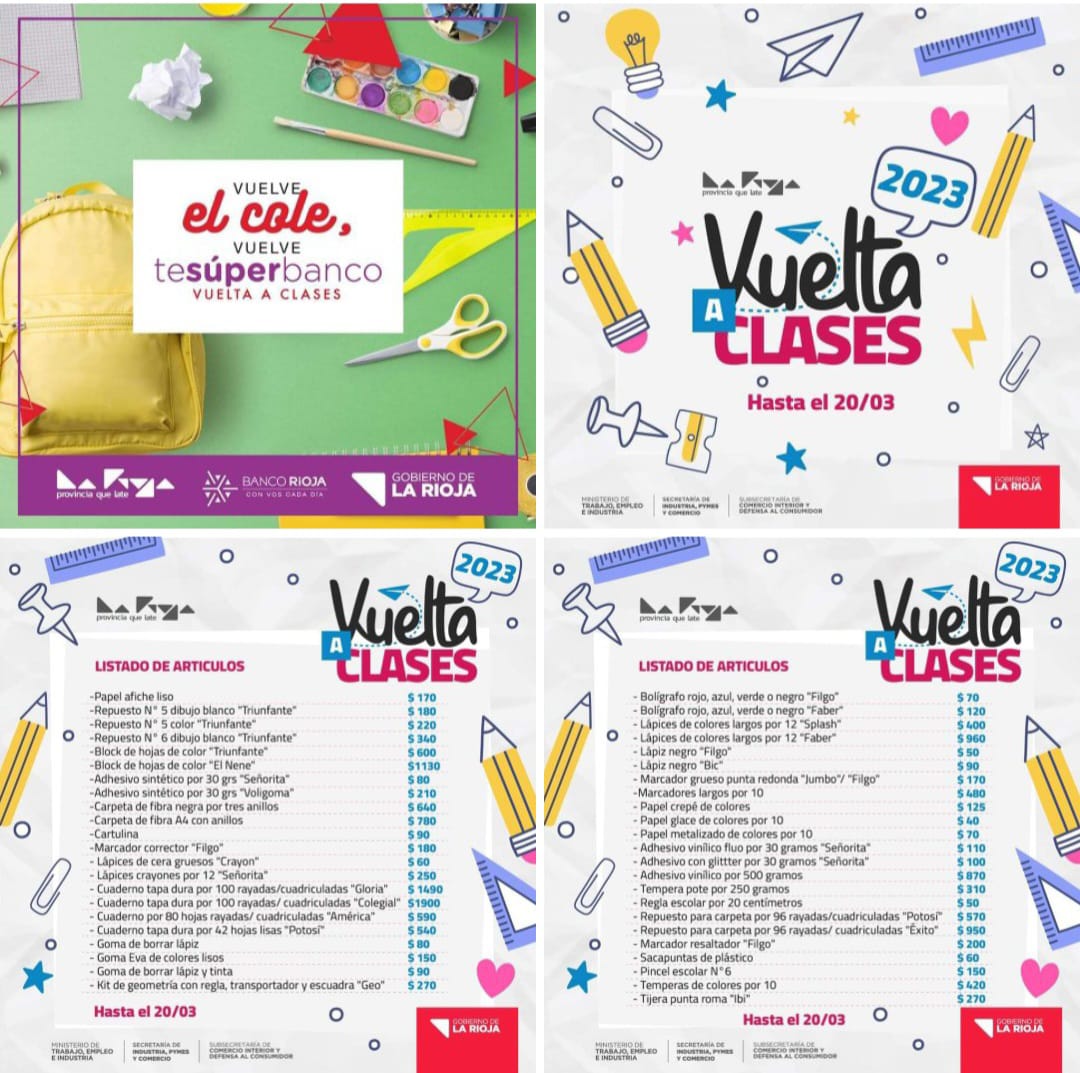 La promoción se extenderá el jueves 16 y 23 de febrero y todos los jueves de marzo.Se podrá acceder a los beneficios con tarjeta de débito y crédito del Banco Rioja, pudiendo comprar en 3 cuotas sin interés.Además, se implementó un acuerdo de precios hasta el 20 de marzo con una extensa lista de útiles escolares para ayudar a la economía familiar.