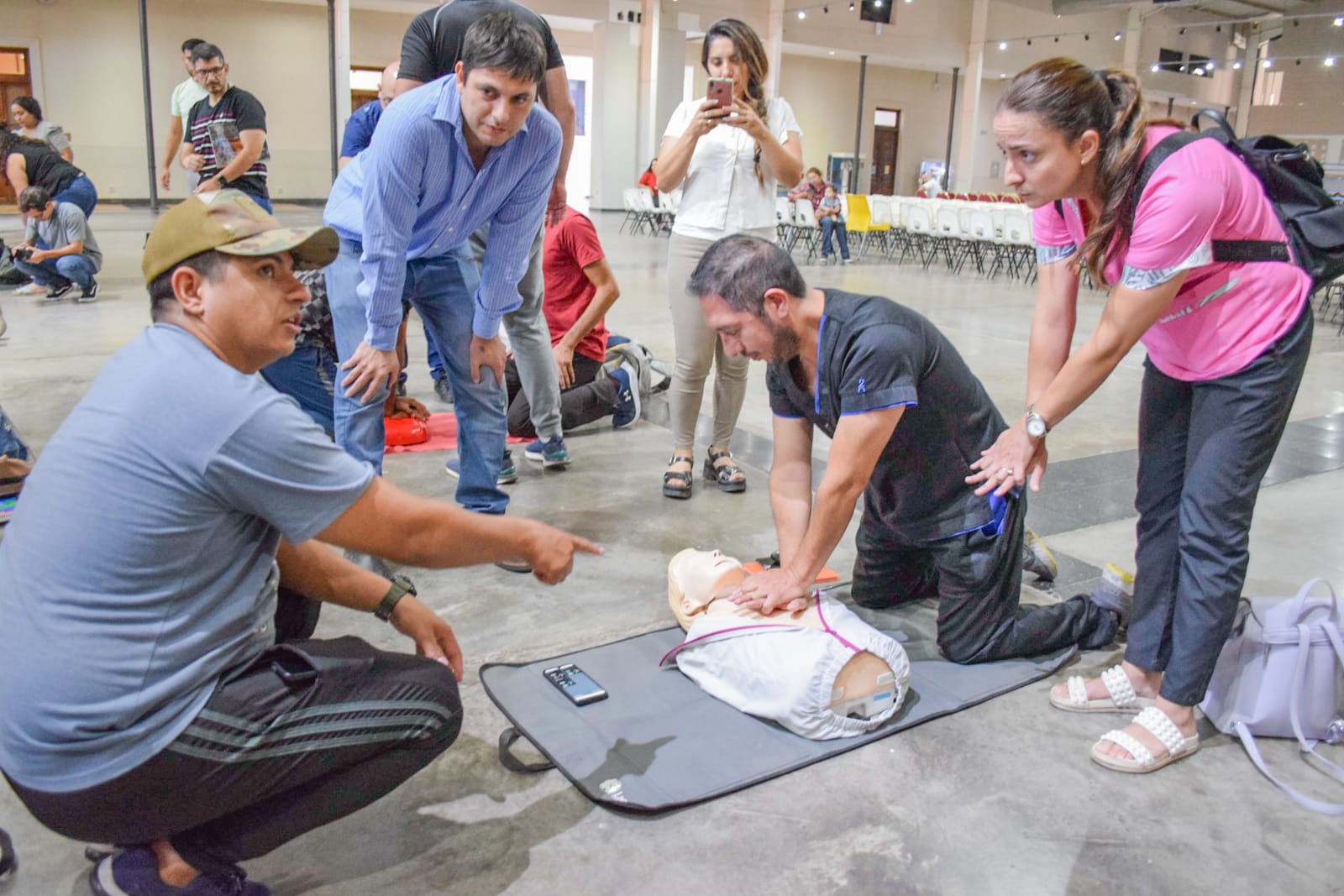 Las capacitaciones estuvieron a cargo de los médicos cardiólogos Ariel Cejas Mariño y Guillermo Carrizo y los enfermeros del 107, Maximiliano Leandro Sonnenberg Moser y Cristian Herrera, con la coordinación de los profesionales Pablo Torres y Matías Romero Vega.