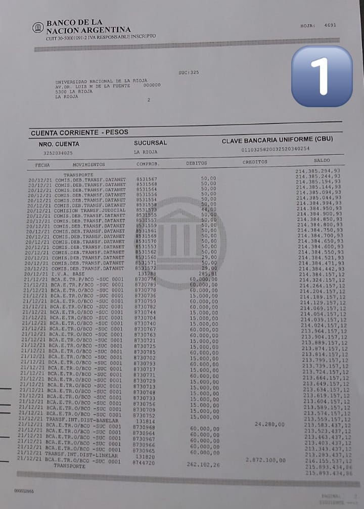 Sobre el presupuesto que llevamos adelante en forma conjunta, desde el espacio FACU+ y las autoridades electas y para terminar con las mentiras y opiniones de autoridades y asesores que tiene la gestión Consenso, les comparto el estado de la cuenta de la UNLaR en Banco Nación en los días que finalizamos: dejamos la gestión con fondos favorables de: 214 millones 384 mil 157 pesos con 12 centavos (Ver placas de los días 20, 21 y 22 de diciembre de 2021). De igual modo, evidencia que, el día 22 de diciembre cuando ya no éramos gestión, aún había en la cuenta de la UNLaR 198 millones 193 mil 509 pesos.