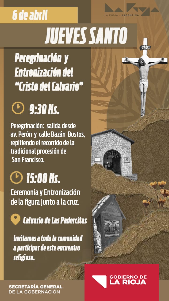 Este jueves 6 de Abril, se llevará a cabo la tradicional Peregrinación y Entronización del "Cristo del Calvario". Se invita a toda la comunidad religiosa a participar de las acciones con motivo de la Semana Santa.