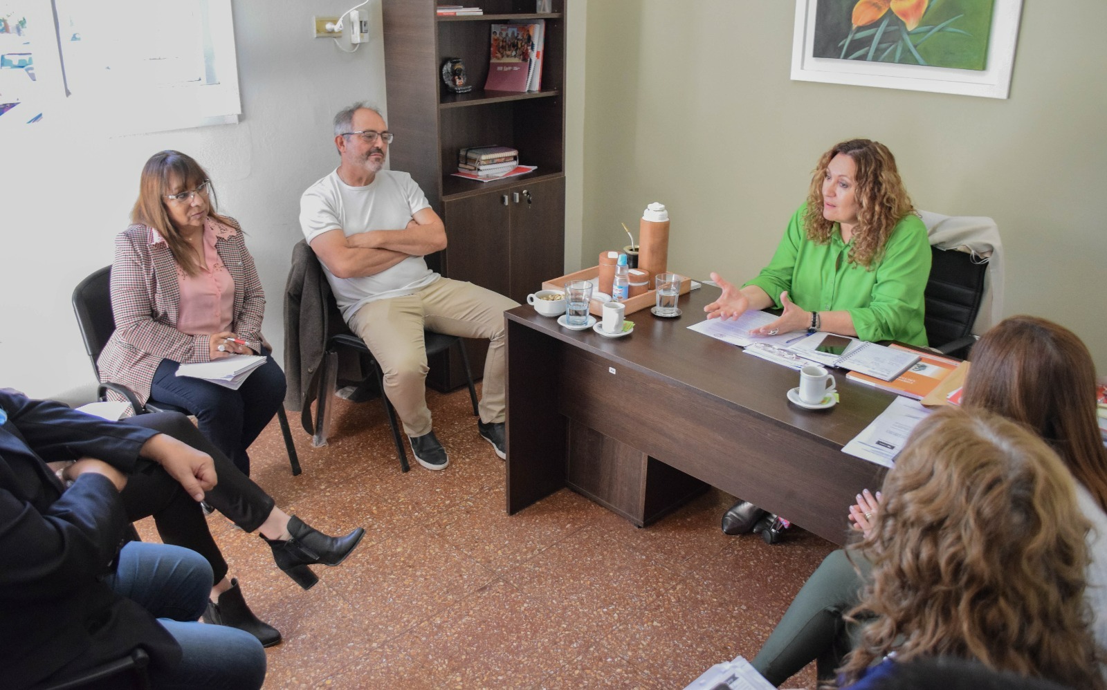 La secretaria de Salud Marcia Ticac recibió la visita de su par de Gestión Educativa, Zoraida Rodríguez y equipo técnico de Educación, para avanzar en la construcción de programas conjuntos de prevención de la salud. Además, participaron la subsecretaria de Ejecución de Programas Emilia Parco, el director de Enfermedades Transmisibles Eduardo Rombolá y la coordinadora de Salud Sexual, Género y Diversidad Marta Llanos.