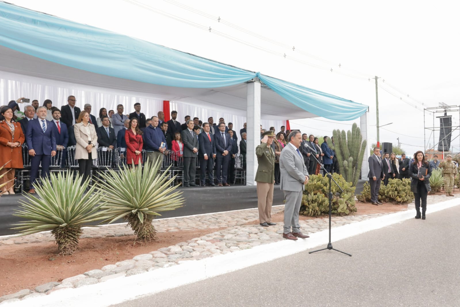 En la mañana de este sábado, el gobernador Ricardo Quintela encabezó el acto central y desfile cívico militar por el aniversario N°432 de la Ciudad de Todos los Santos de la Nueva Rioja, que tuvo lugar en la avenida Los Cactus del Parque de la Ciudad.