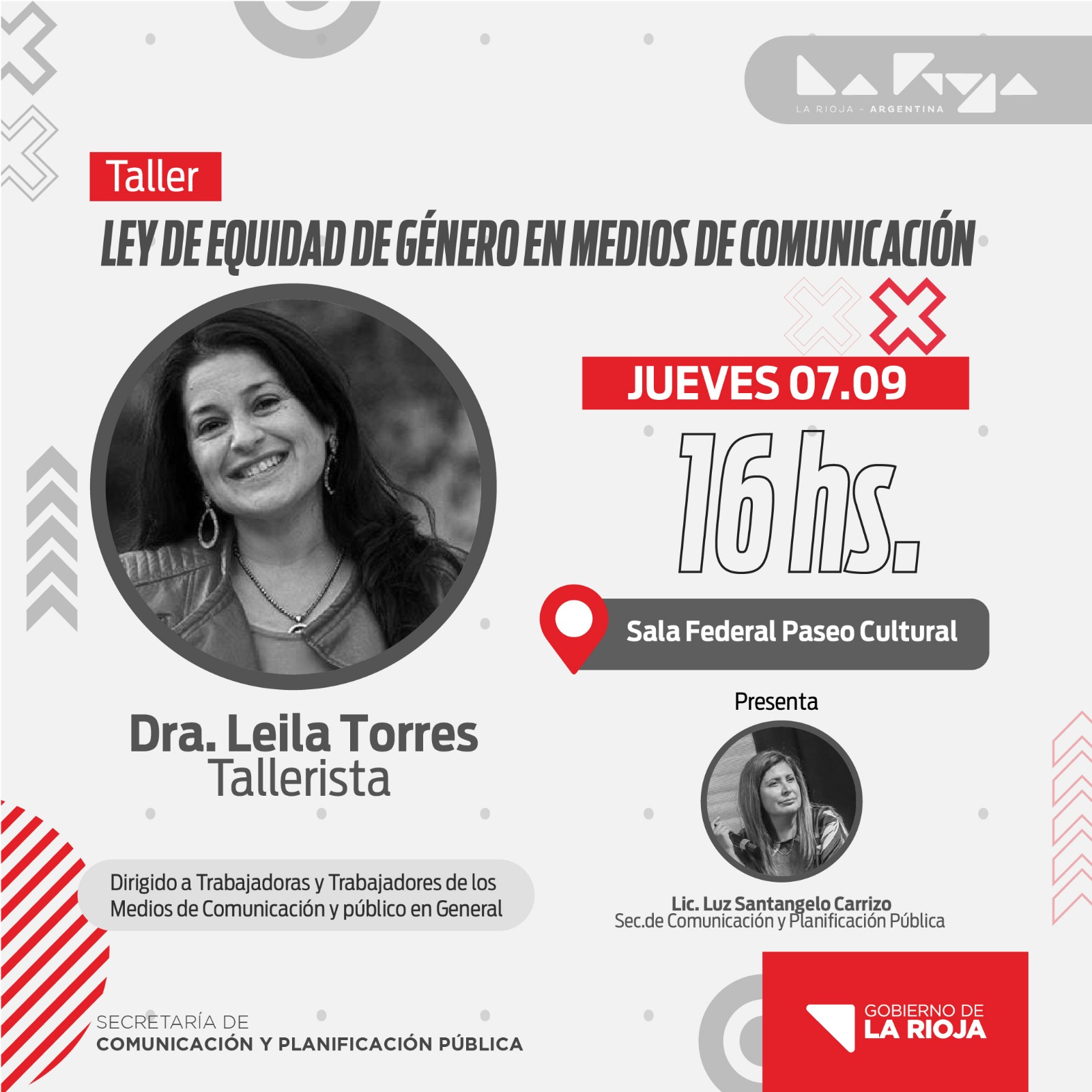 En el marco de las acciones de formación que lleva adelante la Secretaría de Comunicación y Planificación Pública, el próximo jueves 7, a partir de las 16 horas, en la Sala Federal del Paseo Cultural, se desarrollará una charla dirigida a trabajadoras y trabajadores de los medios de comunicación referida a la Ley de Equidad de Género en los medios de comunicación.