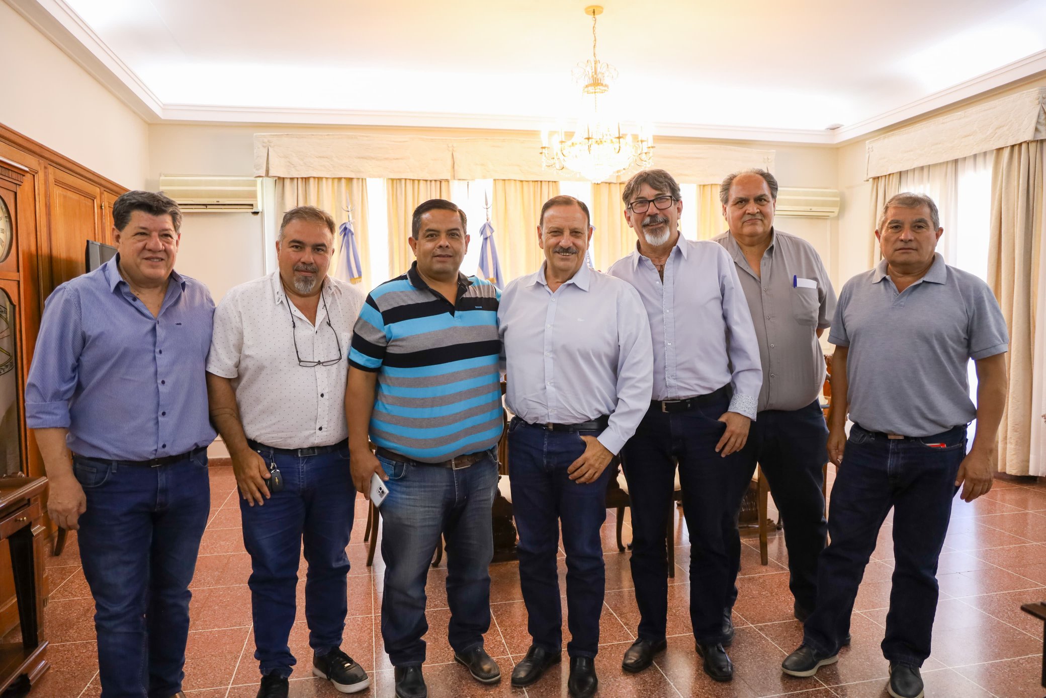 Ricardo Quintela se reunió con el secretario adjunto de la Federación Argentina de Trabajadores Viales, Daniel Pedroza, el gremialista Eduardo Peña (CGT) y representantes sindicales de trabajadores viales de la provincia, Javier Santillán, Mario Díaz y Juan Farías.
