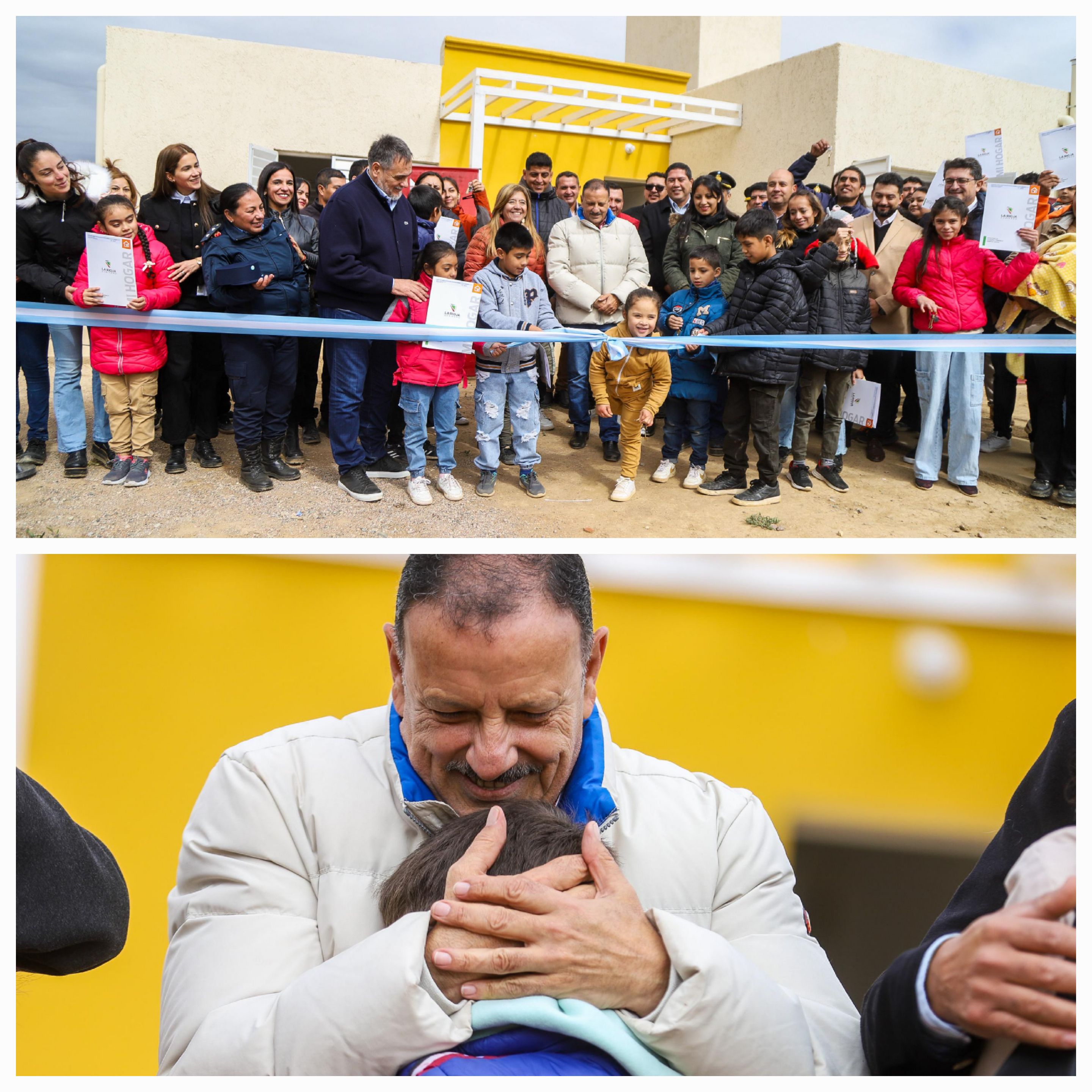 “Estas doce viviendas que con mucho esfuerzo hizo el gobierno provincial, son de tres habitaciones, y los beneficiarios, felices, podrán empezar a construir sus familias, llenas de amor, y para que sus hijos tengan un futuro mejor”, afirmó.