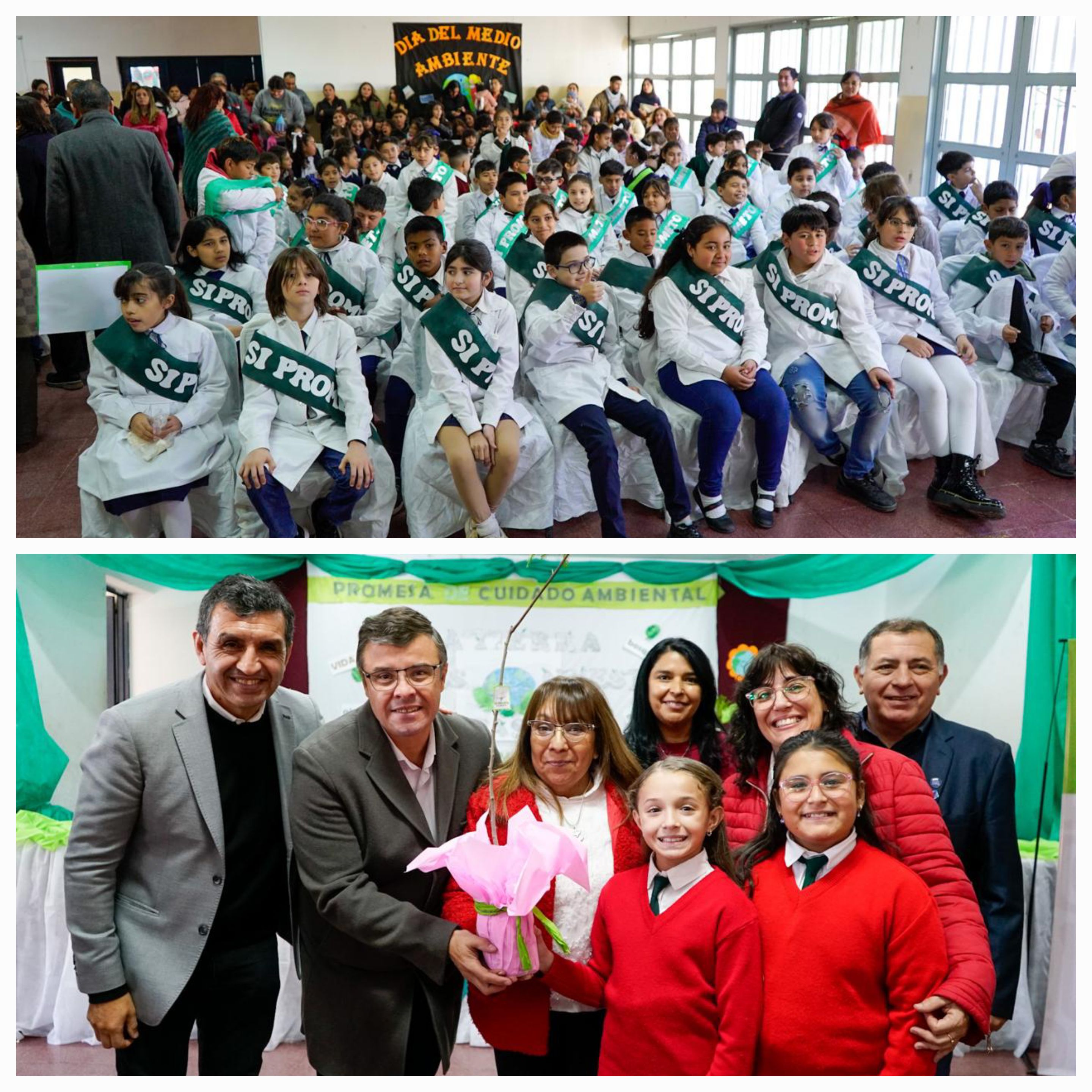 Del acto de promesa al cuidado del ambiente participaron además el ministro de Producción y Ambiente Ernesto Perez, la viceintendenta Mónica Diaz D'Albano; los diputados provinciales Lourdes Ortiz, Maricel Muñoz y Juan Carlos Santander; los secretarios educativos Zoraida Rodríguez, Duilio Madera y José Ávila.