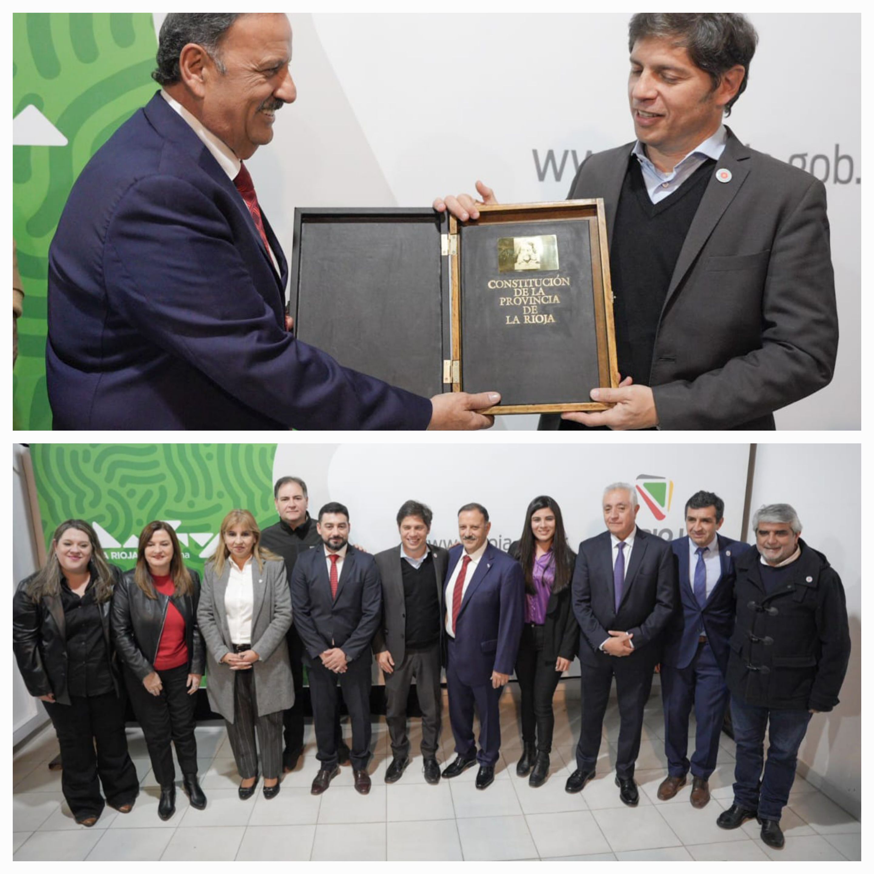 En el día de hoy, los gobernadores de La Rioja, Ricardo Quintela, y de Buenos Aires, Axel Kicillof, para firmar importantes convenios para establecer un amplio marco de colaboración, cooperación y asistencia recíproca en materia de gobierno, seguridad, salud, educación, formación y capacitación, ciencia y tecnología, gobierno digital, conectividad y modernización, entre otras, con la finalidad de articular programas y acciones entre sí.