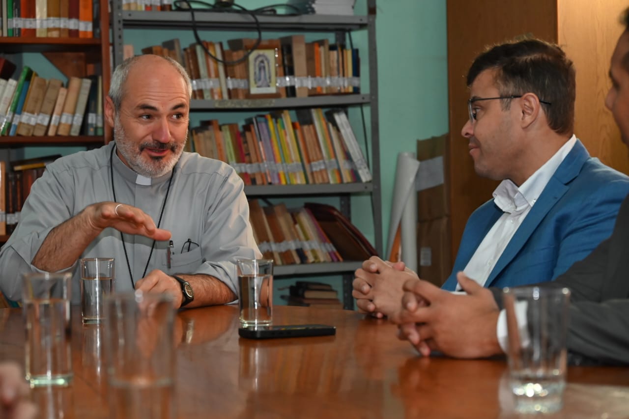 El ministro de Producción y Ambiente, Ernesto Pérez, junto a miembros del gabinete provincial, se reunieron este viernes con el Obispo de la provincia, Dante Braida, para dialogar sobre la creación de una mesa de gabinete sobre cambio climático en la provincia, que permitirá integrar diversas voces y experiencias en la toma de decisiones.