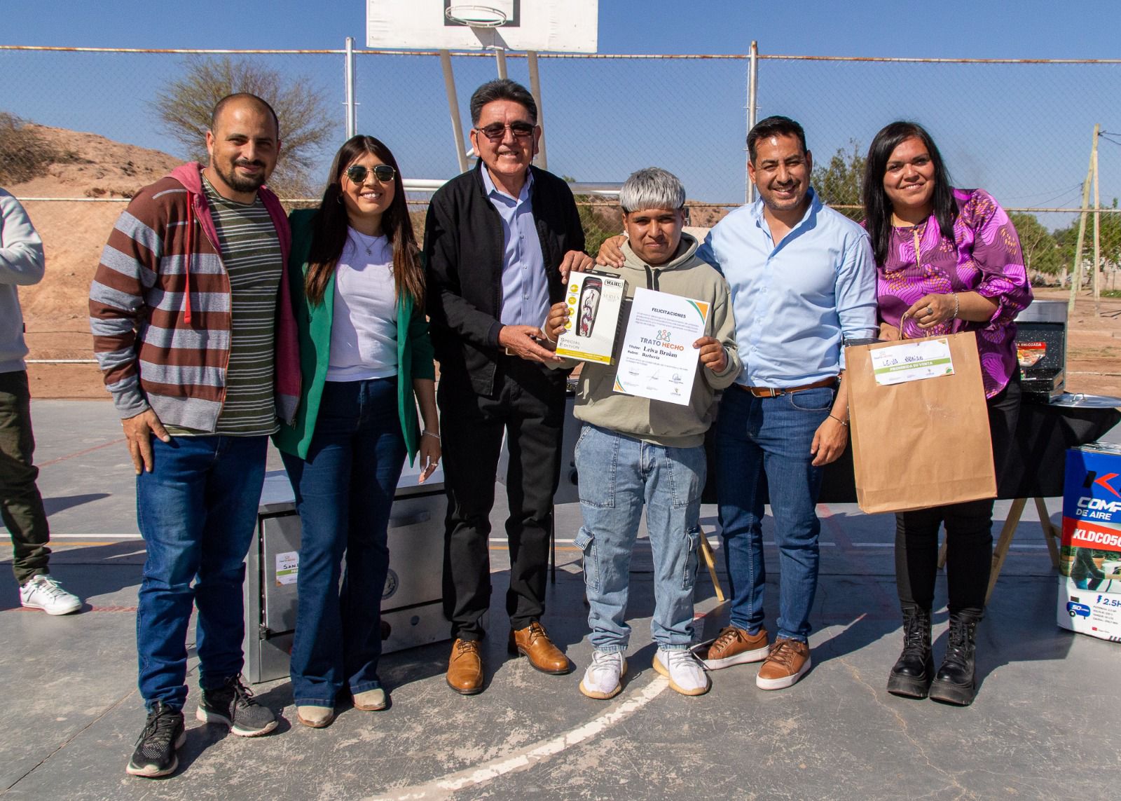 Seguidamente, en el Playón Deportivo, se hizo una entrega de herramientas mediante el programa “Trato Hecho”, de la Secretaría de Economía Popular. Distintos emprendimientos y unidades productivas que ya se encuentran funcionando, recibieron elementos de trabajo, como ser hornos y freidoras para los rubros gastronómicos y de pastelería, kits de tijeras y afeitadoras para barberías y peluquerías, taladros y compresores para quienes realizan tareas de albañilería y gomería. “Estas herramientas nos permiten acompañar a quienes usan sus conocimientos para generar el sustento diario para sí mismos y sus familias. Logrando ser un Ministerio promotor del trabajo y no tan asistencialista”, destacó Menem.