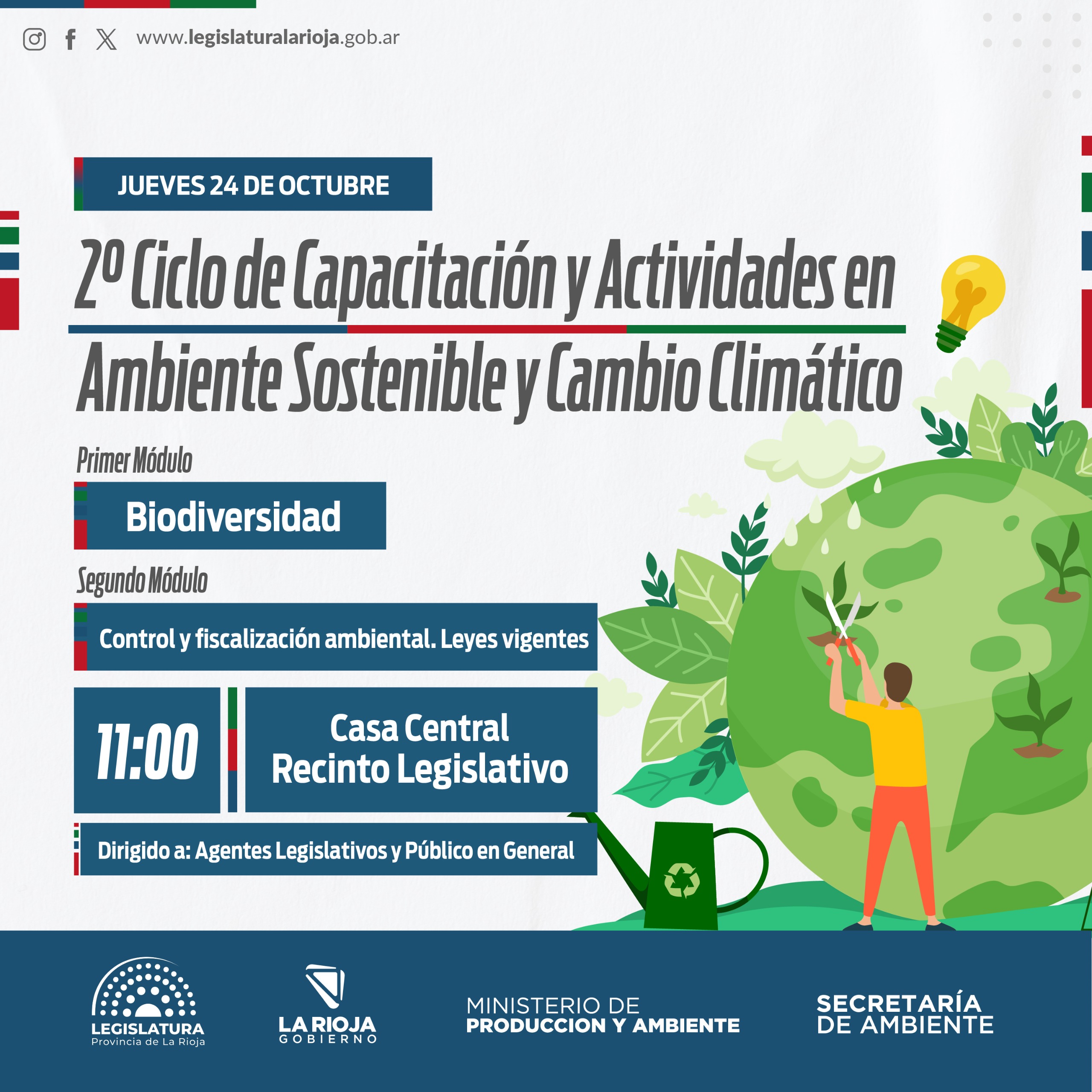 Organizado por el Gobierno de la Provincia, la Legislatura de la Provincia, el Ministerio de Producción y Ambiente, y la Secretaría de Ambiente, este ciclo de capacitación dirigido a las y los agentes legislativos y público en general, tendrá lugar este jueves 24, a las 11 horas, en el recinto legislativo de la Cámara de Diputados de la Provincia. No requiere inscripción previa.