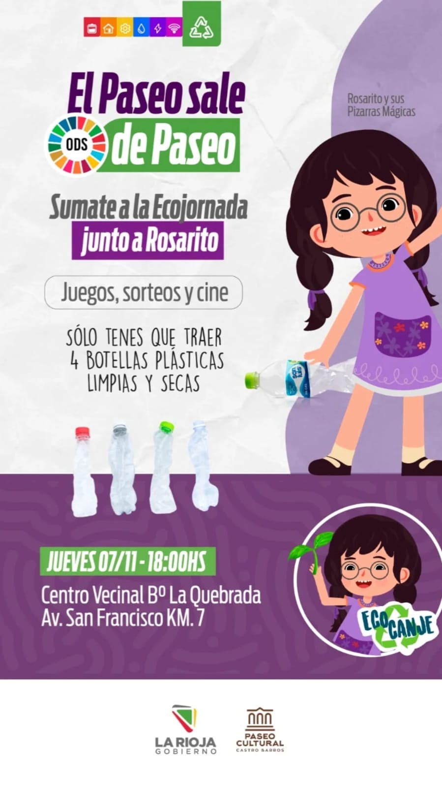 El encuentro comenzará a las 18 horas y está destinado a niños, niñas y adolescentes, quienes podrán ingresar de manera libre y gratuita. Durante la jornada, se podrá participar de la actividad de Ecocanje ( llevando botellas plásticas ) se disfrutará de Cine móvil con la proyección del audiovisual “Rosarito y sus pizarras mágicas”; también se podrá participar de talleres lúdicos de educación ambiental, artes visuales y danzas.  Se brindará una merienda y al finalizar se realizarán sorteos con entrega de premios.