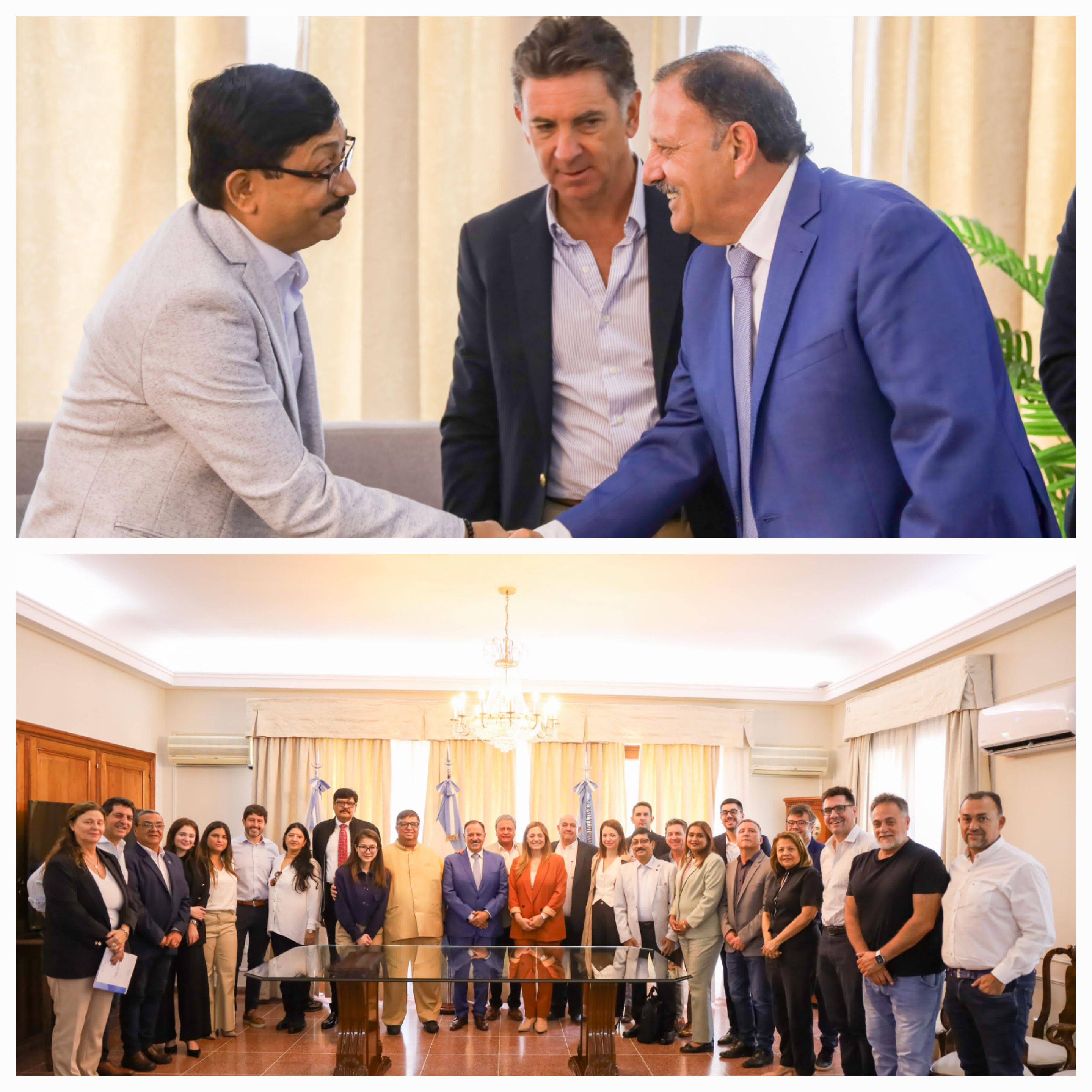 En la jornada de este lunes, el gobernador Ricardo Quintela, recibió a inversionistas de la empresa india SRAM & MRAM con el objetivo de poner en marcha el plan de expandir la actividad avícola de engorde de la provincia y desarrollar el mercado exportador.
