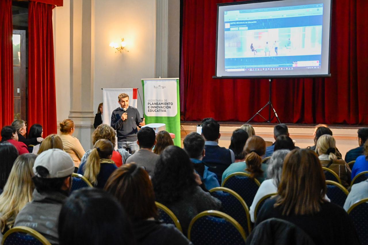 En la jornada del martes, en la Salón Coty Agost Carreño del Paseo Cultural Castro Barros, se presentó el Sistema de Evaluación de Proyectos de Capacitación (SIEPEC) y se brindó una capacitación introductoria sobre su uso. La secretaria de Planeamiento del Ministerio de Educación, Vanesa Navarro, estuvo a cargo de la presentación de esta herramienta digital que transformará el circuito de formación docente en toda la Provincia.