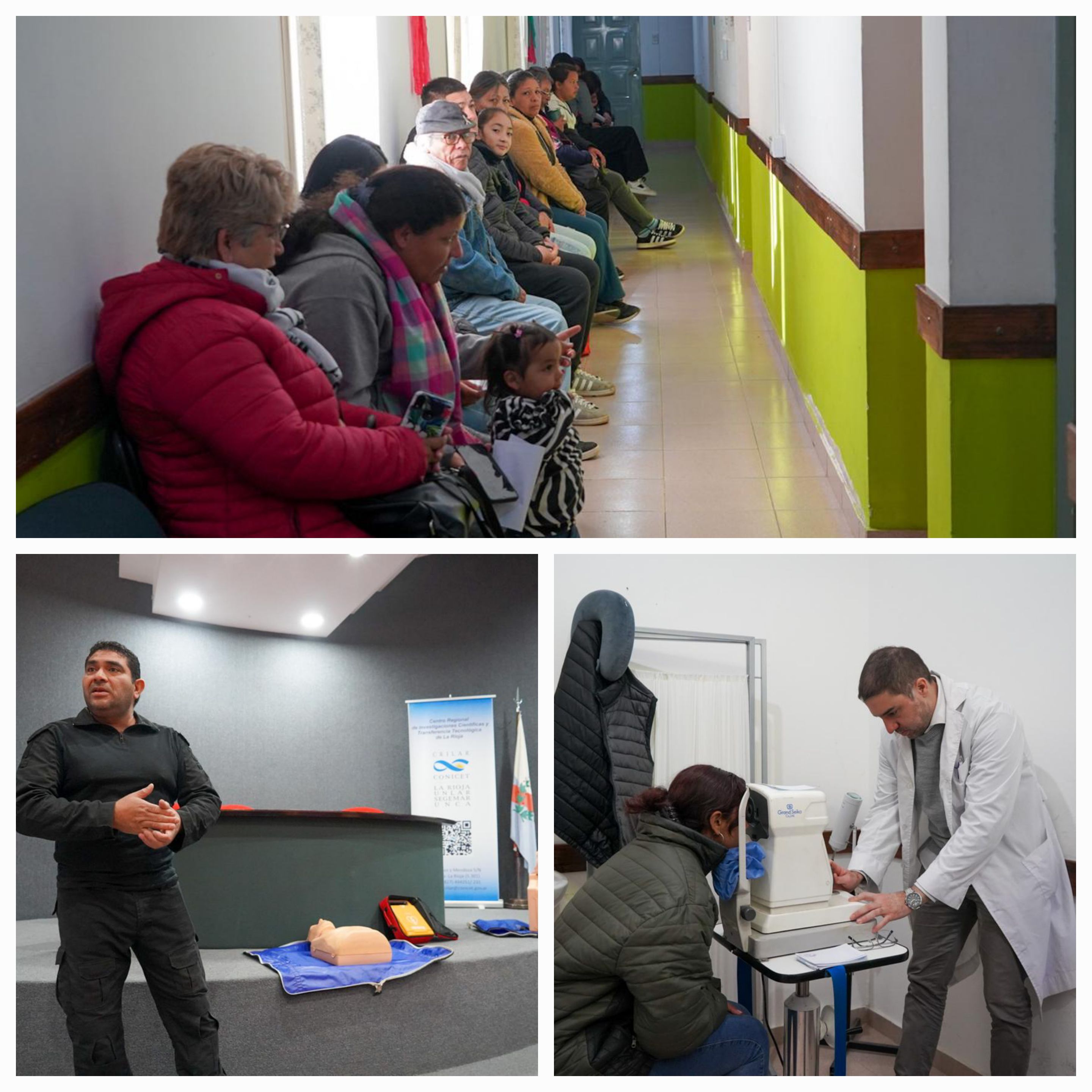 Participaron del operativo el coordinador de Oftalmología del Ministerio de Salud, Hernán Díaz Carreño, junto a su equipo de profesionales; el responsable del área de Rehabilitación, Matías Romero Vega; Alejo Gaitán, del equipo de la Red Cardiovascular; y personal del CRILaR Anillaco, Policía, Bomberos y Defensa Civil.