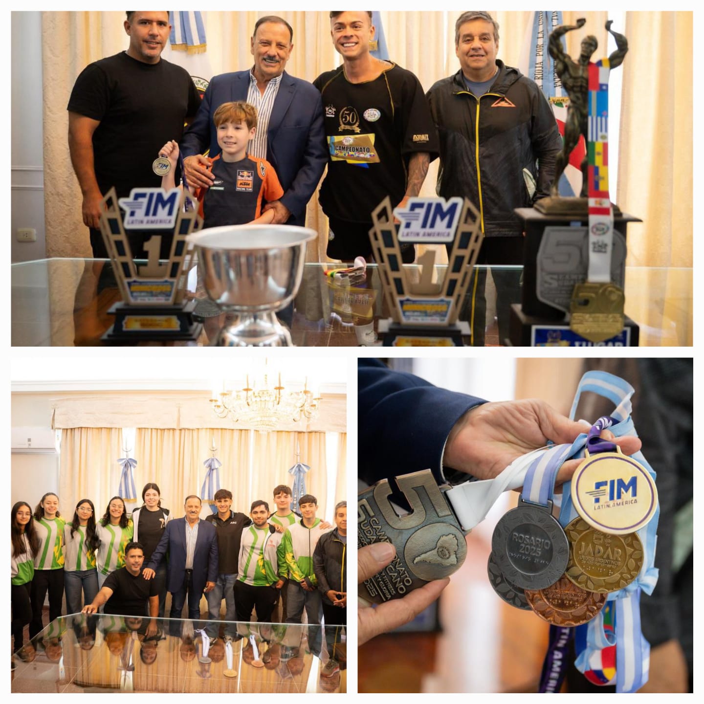 Además, el gobernador recibió a Pablo Martín, campeón sudamericano de fisicoculturismo y Tobías Ruarte, campeón latinoamericano de mini cross y Kiara, campeona de taekwondo.