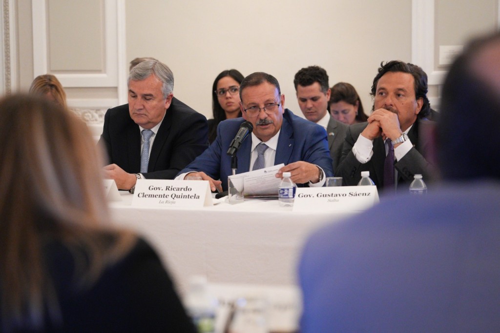 Los gobernadores de la región del Norte Grande argentino se reunieron con el director del Departamento del Hemisferio Occidental del FMI, Ilan Golfdajn y el subdirector y jefe de la Misión Argentina, Luis Cubeddu, junto con el embajador argentino en EEUU, Jorge Argüello, en un constructivo intercambio en el marco de la misión comercial e institucional que llevan adelante en Washington.