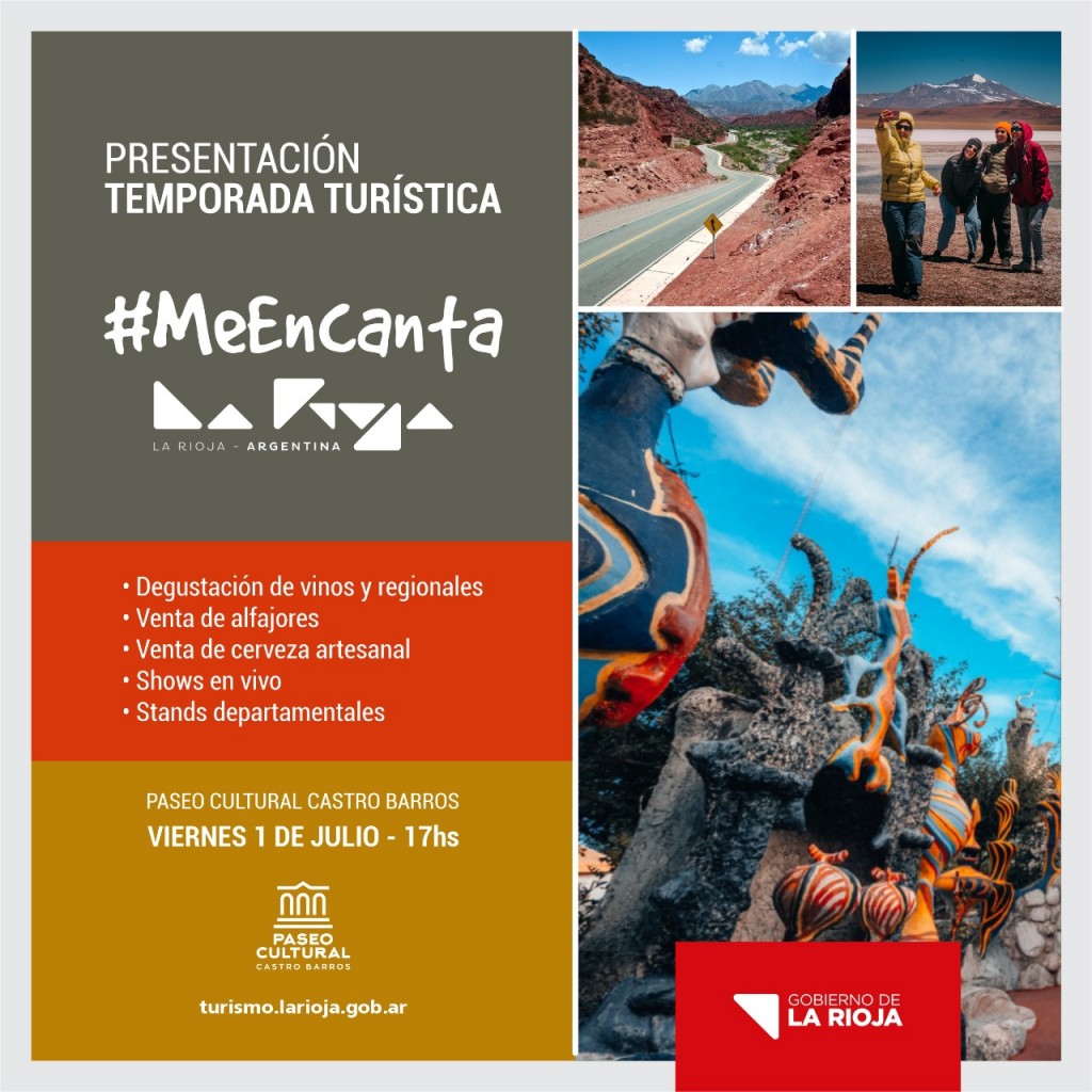 El Gobierno de la Provincia, realiza este viernes 1 de julio la presentación de la temporada turística de invierno “Me Encanta La Rioja”, que tendrá lugar en el Paseo Cultural “Castro Barros” de 17 a 21 horas.