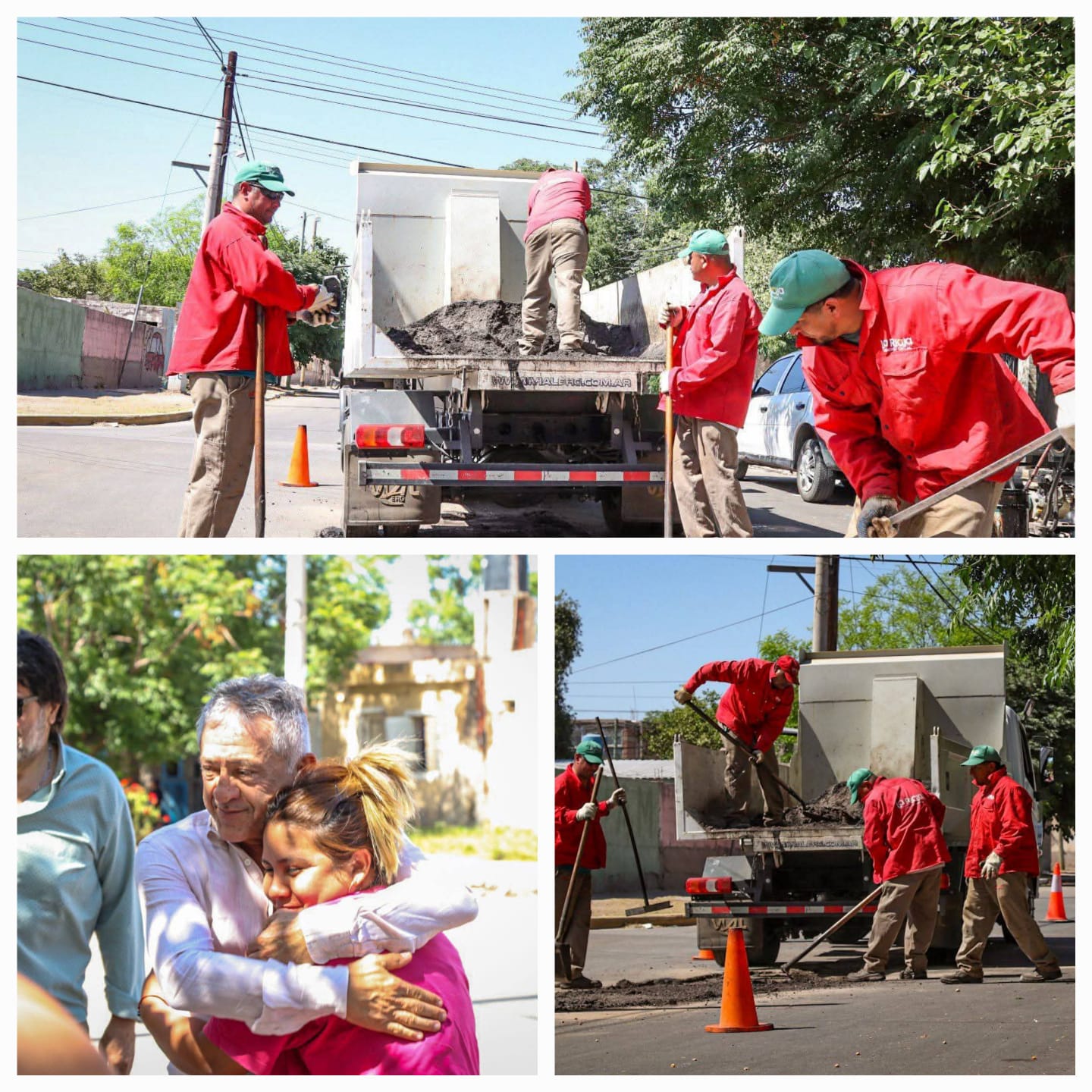 Así lo manifestó, el intendente Armando Molina en su visita al barrio Isla Malvinas, donde superviso los trabajos de bacheo con aplicación de asfalto en frío en la calle Guido y Carlos Spano.