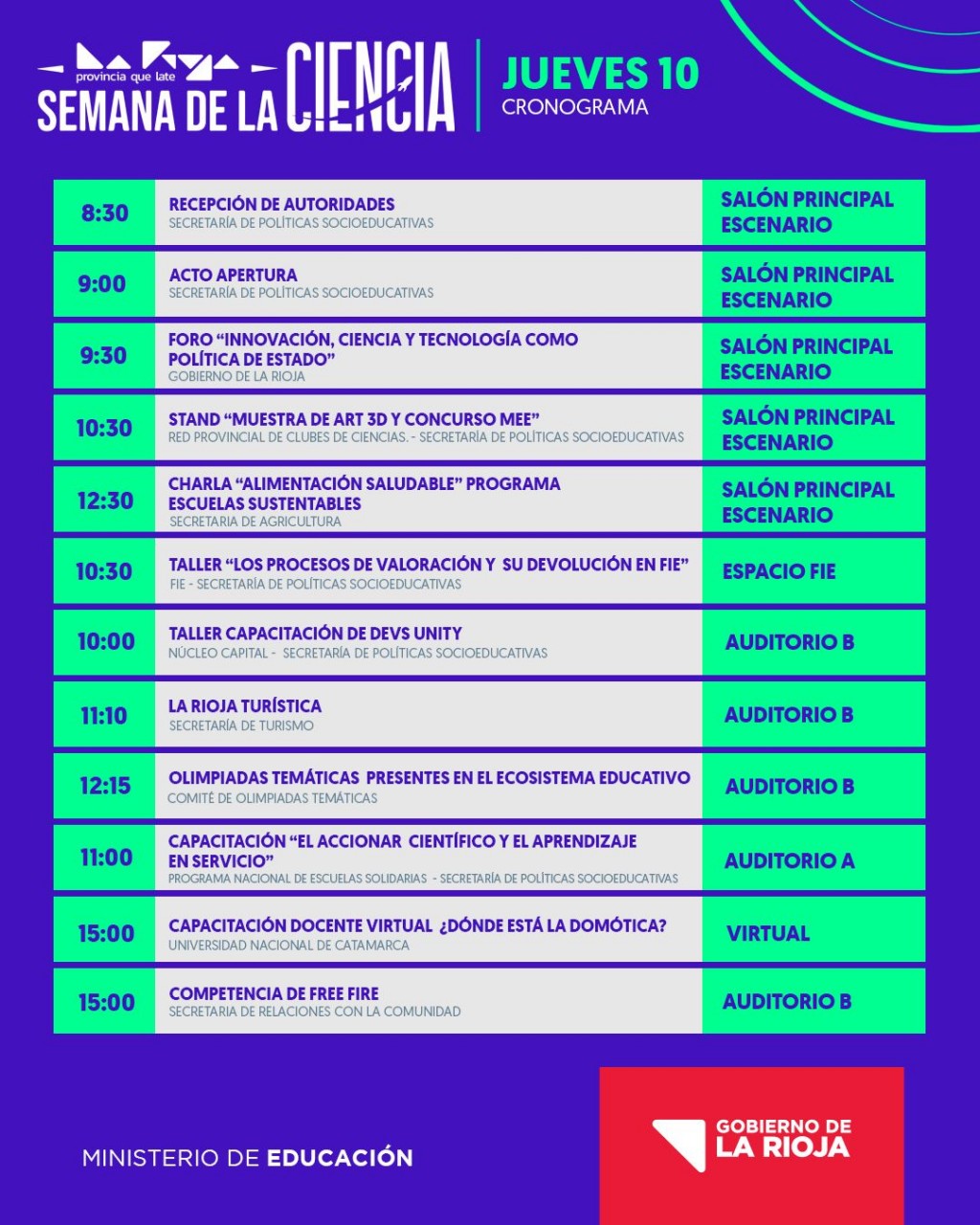 La 2° Semana Provincial de la Ciencia y de la Tecnología, es organizada por la Secretaría de Políticas Socioeducativas dependiente del Ministerio de Educación y se realizará entre los días 10, 11 y 12 de noviembre y se desarrollará en un formato bimodal (virtual-presencial) con talleres, charlas, actividades artísticas, intervenciones culturales, visitas virtuales/presenciales, experimentos, exposiciones fotográficas, stand up científicos, y mucho más.