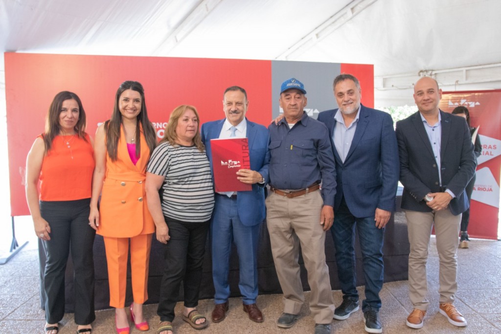 En la mañana de este miércoles 16 de noviembre, el gobernador Ricardo Quintela, junto al ministro de Vivienda, Tierras y Hábitat Social, Ariel Puy Soria, entregaron 122 escrituras a los vecinos de los barrios Nueva Esperanza y La Cañada, en el departamento Capital. También se entregó la escritura para la Comisión del Club Deportivo Malanzán e indumentaria de trabajo al equipo de Topógrafos de la Secretaría de Tierras.