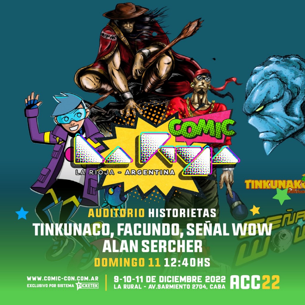 Cabe aclarar que es la primera vez que una provincia participa de la ACC y que a través de la Marca Provincia, La Rioja Comic estará presente el viernes 9 de diciembre a las 14:40 hs., en el Auditorio Series de Animación se presentará Capiangos, El Linyera y Rosarito, el mismo día pero a las 20:40 hs., La Rioja presenta en el Auditorio Desarrollo Gaming, un videojuego de desarrollo con perspectiva de género Capitana de la Patria, en tanto que el domingo 11 a las 12:40 hs., en el Auditorio Historietas se mostrará Tinkunaco, Facundo, Señal Wow y Alan Sercher, concluyendo esta serie de presentaciones riojanas icónicas con la actuación a las 16:30 hs., en el Main Stage de Simón Jackson y la banda local de K-Pop Sunshine.