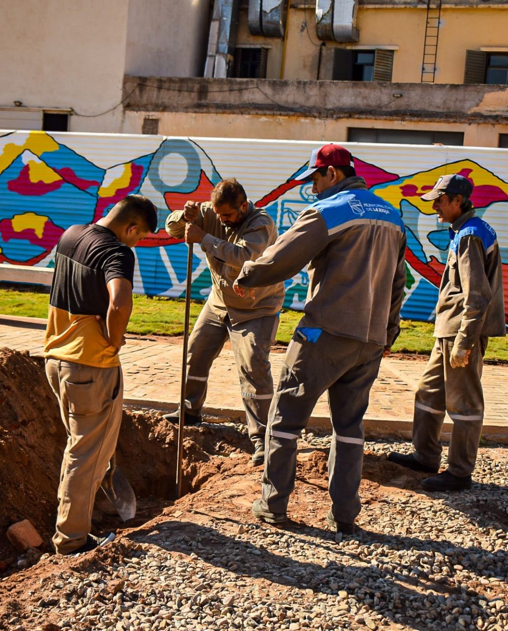 En tanto, la directora general de Obras Públicas, Griselda Gómez explicó los detalles de la obra que en su mayoría se realizó con materiales que la Municipalidad tenía en depósito, como adoquines, que se usaron en las caminerías centrales, a las que se agregaron esferas y bancos de cemento, y otros como los murales de los alrededores en los que artistas locales trabajaron sobre chapas existentes en el lugar imprimiendo color y movimiento.