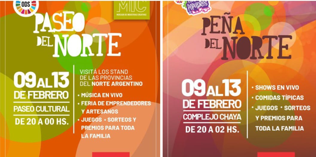 El Paseo Cultural será lugar en el que se desarrolle el Paseo del Norte Grande en donde encontrarás toda la oferta cultural y turística del norte argentino. Desde las 20 hs hasta la medianoche, Catamarca, Santiago del Estero, Jujuy, Salta, Tucumán y La Rioja te esperan para mostrarte todo su encanto norteño en un marco lleno de música, sorteos y premios.