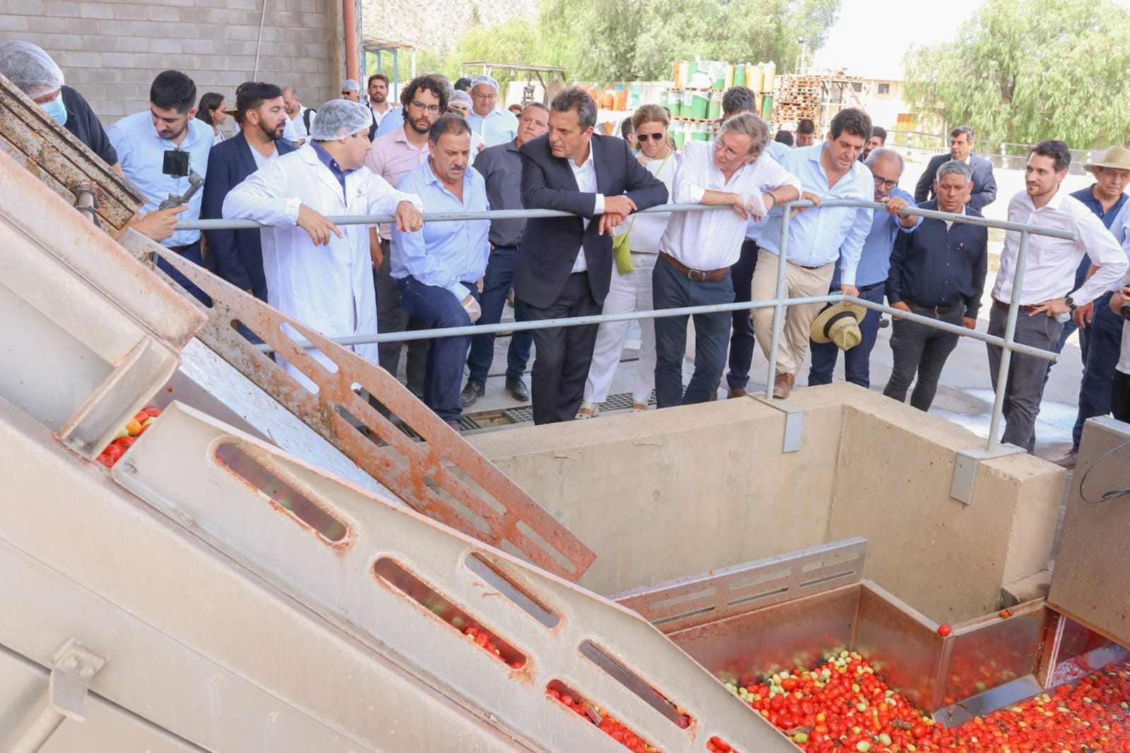 Como parte de la agenda desplegada en Chilecito, el gobernador Ricardo Quintela y el ministro de Economía de la Nación, Sergio Massa, visitaron la empresa productora de alimentos, AgroAndina, una de la más importante del Noroeste Argentino que realiza la producción primaria de tomate y la elaboración de conservas de tomate, legumbres, comidas envasadas, y vegetales congelados, que utilizan envases sustentables y amigables con el medio ambiente.