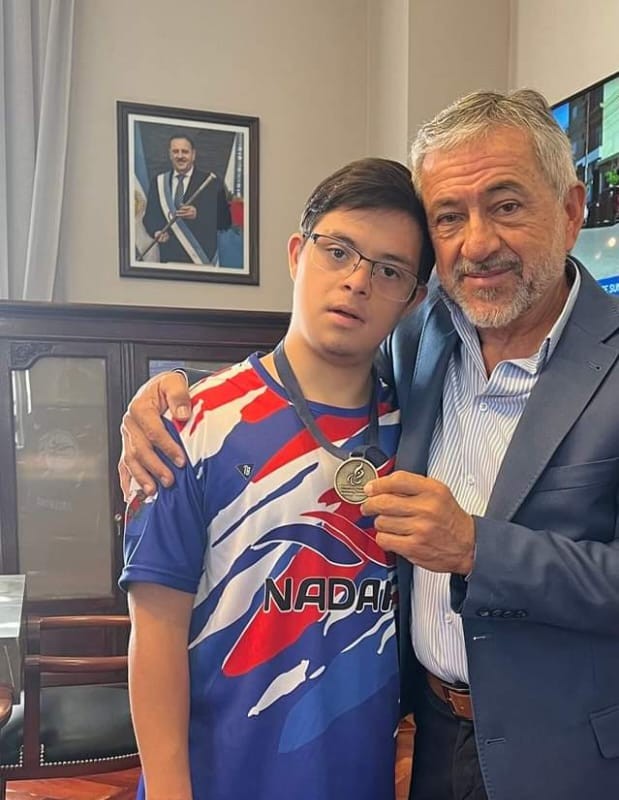 Mariano Vera Barros fue recibido por el secretario de la Gobernación, Armando Molina, quien felicito al nadador y a la Asociación Civil Nadar, por la tarea que realizan diariamente que permite que participen en competencias a nivel nacional.