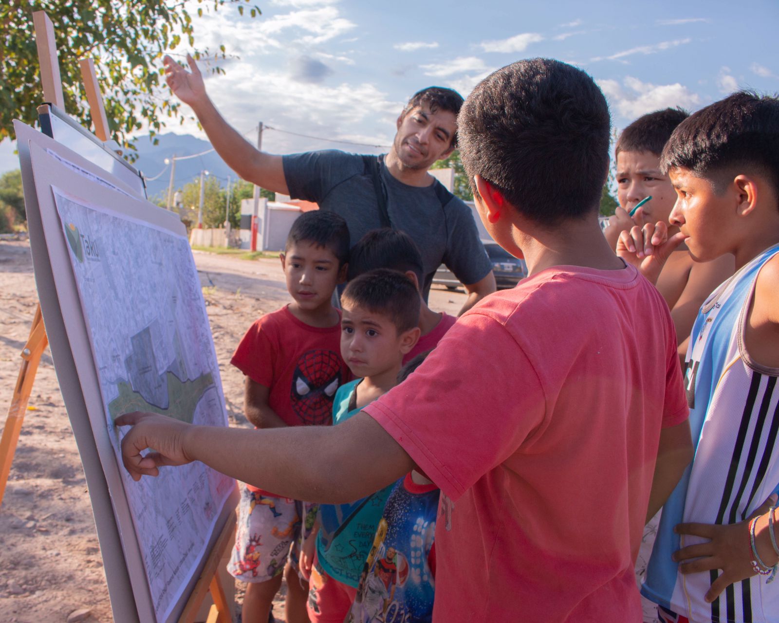 De esta manera, el taller se conformó de dos etapas, en las que se pudo intercambiar perspectivas, escuchar los intereses y demandas de las familias, jóvenes, niños y niñas; que luego se vio plasmado en la planificación del proyecto y en las diferentes alternativas propuestas para el futuro espacio verde pensado para el beneficio de la comunidad.