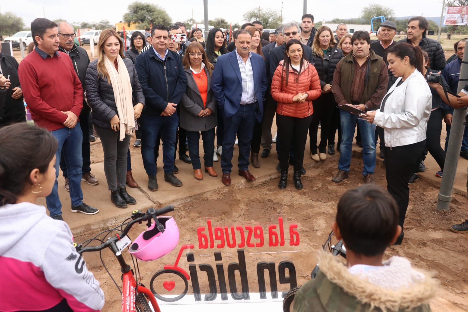 Este viernes, en el marco de una visita de trabajo al departamento Gral. San Martin, el gobernador Ricardo Quintela encabezó, en el paraje Nueva Esperanza, la entrega de 23 bicicletas del Programa “A la escuela en Bici”, que contempla la entrega de bicicletas a alumnos de 6° grado de escuelas rurales de la provincia para que puedan asistir a clases. En este contexto, se realizó también en Nueva Esperanza, la inauguración de una nueva plazoleta con su respectivo corte de cintas y descubrimiento de placa inaugural.