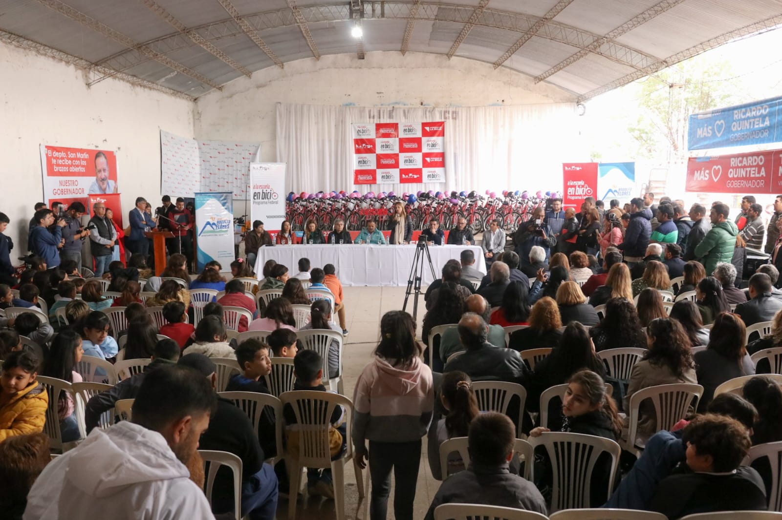 Al hacer uso de la palabra,  el Gobernador explicó: “pensábamos cómo resolver el problemas de muchos niños que tenían que ir a lomo de mula para recibir educación y consideramos en brindarles a los chicos del interior profundo estas bicis, no son del Estado son de ellos y el año que viene, si nos renuevan la posibilidad de seguir conduciendo la provincia, queremos entregarles a los que hoy están en 5to y pasaran a 6to”.