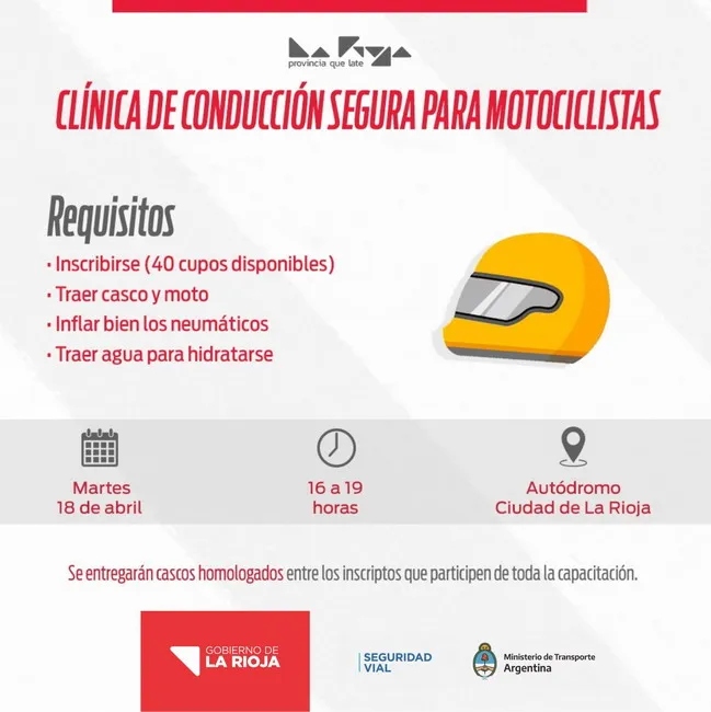 Como requisito, quienes asistan deberá llevar su moto en condiciones, con frenos en buen estado y neumáticos inflados debidamente, además de buena predisposición para aprender y capacitarse.