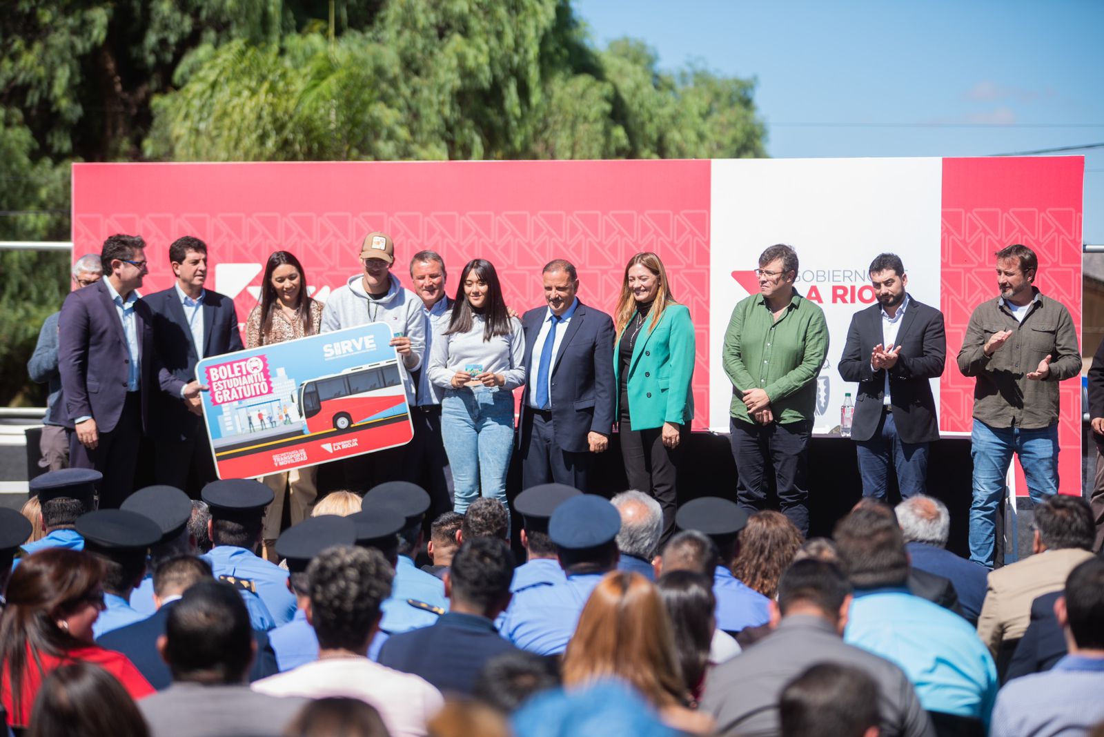 En la oportunidad se entregaron 400 Boletos Gratuitos a estudiantes secundarios y estudiantes universitarios, entrega de 9 patrulleros 0 km destinados a la División Alcaidía, Comisarías de Nonogasta, Anguinán, Sañogasta y Vinchina; Comisarías Primera y Segunda de Chilecito; Infantería y Seguridad Vial y entrega de subsidios a 112 productores que recibieron fondos por daños causados por heladas.
