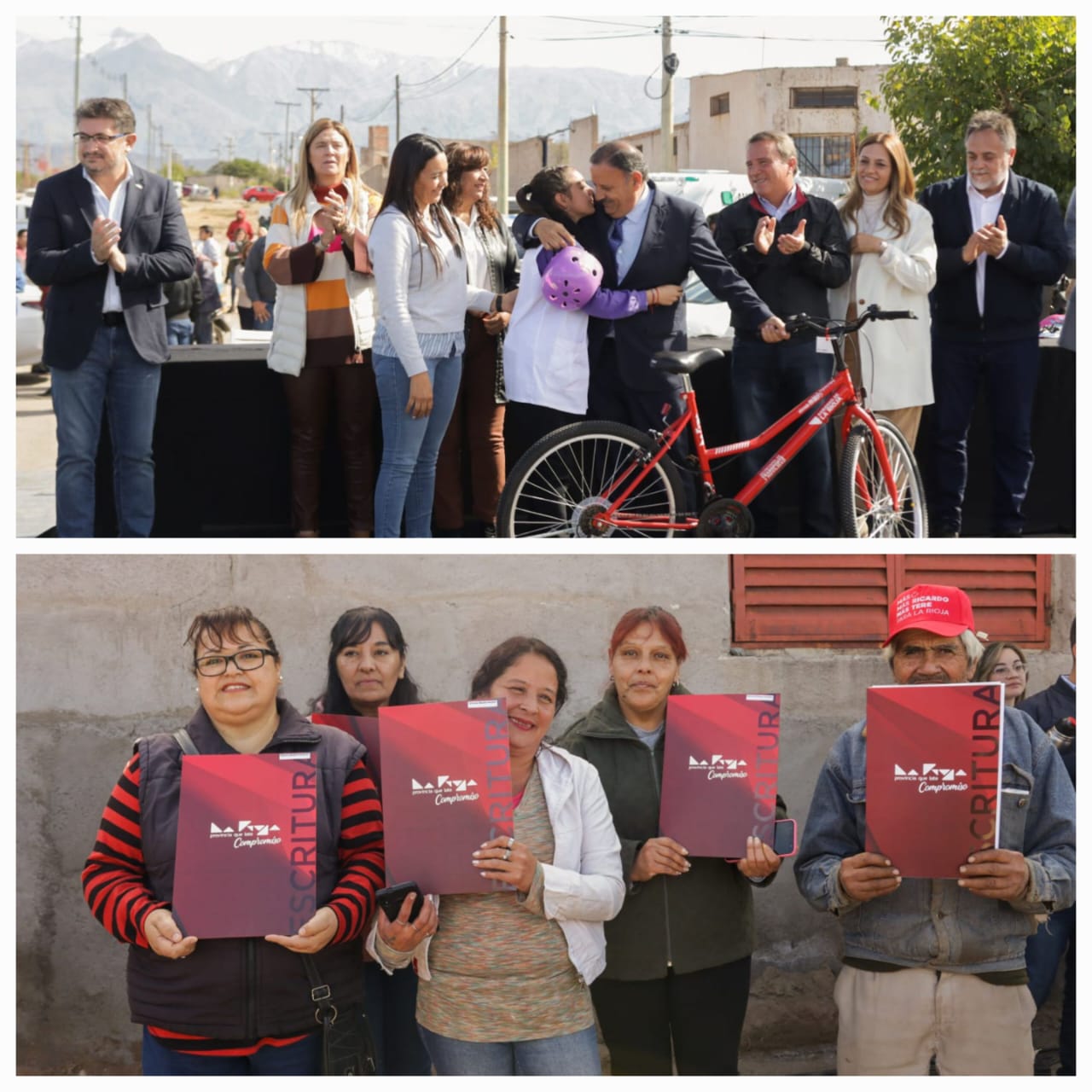En Chilecito Quintela entregó más de 200 bicicletas a estudiantes, 406 escrituras y 100 decretos de pase a planta permanente