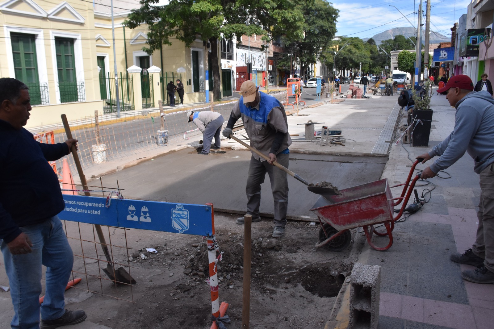 De igual manera progresa el espacio ubicado en la esquina de la calle Adolfo E. Dávila, donde se construye una micro plaza, con un imponente mural obra de la artista plástica Ada Mercedes Cid. En ambos lugares próximamente se colocará mobiliario urbano que integrará servicios para los vecinos en esta superficie ampliada de vereda que ocupará casi 400 mts2.