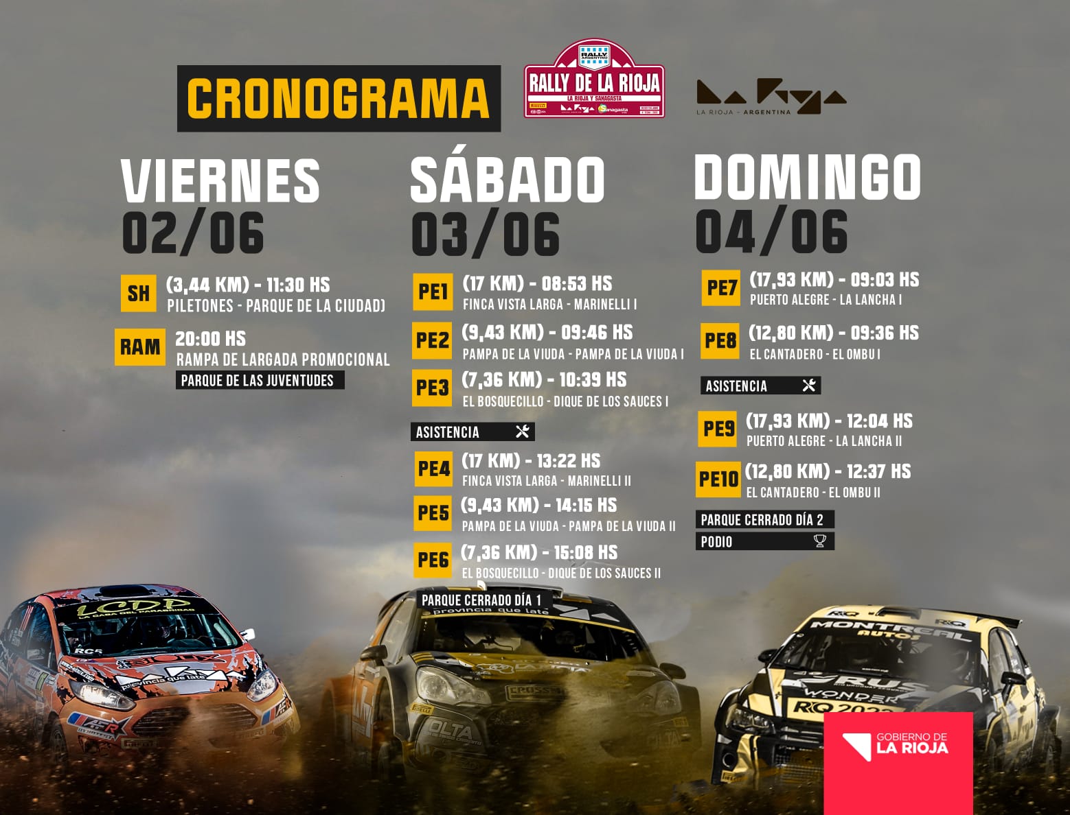 El Rally de La Rioja dará inicio a sus primeras actividades previas, el jueves 1 de junio cuando comiencen los reconocimientos. Entre las 14 y las 18 horas, los competidores realizarán un primer período de relevamiento de las pruebas especiales.