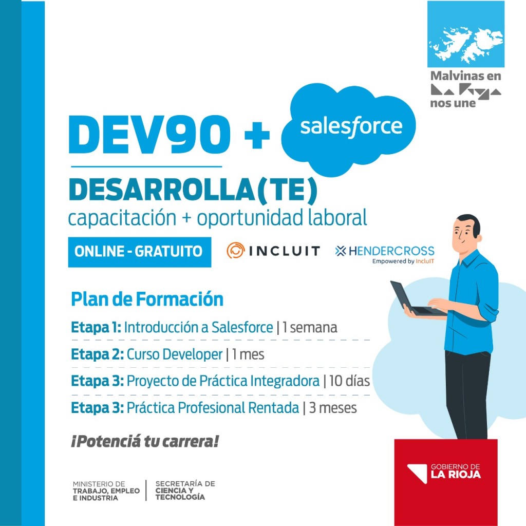 La Secretaría de Ciencia y Tecnología de la Provincia llama a inscripción a aquellos interesados en realizar el curso DEV90 + Sales Force, que depende del programa "Desarrolla (te)" y permitirá la capacitación gratuita para acceder a diferentes oportunidades laborales.