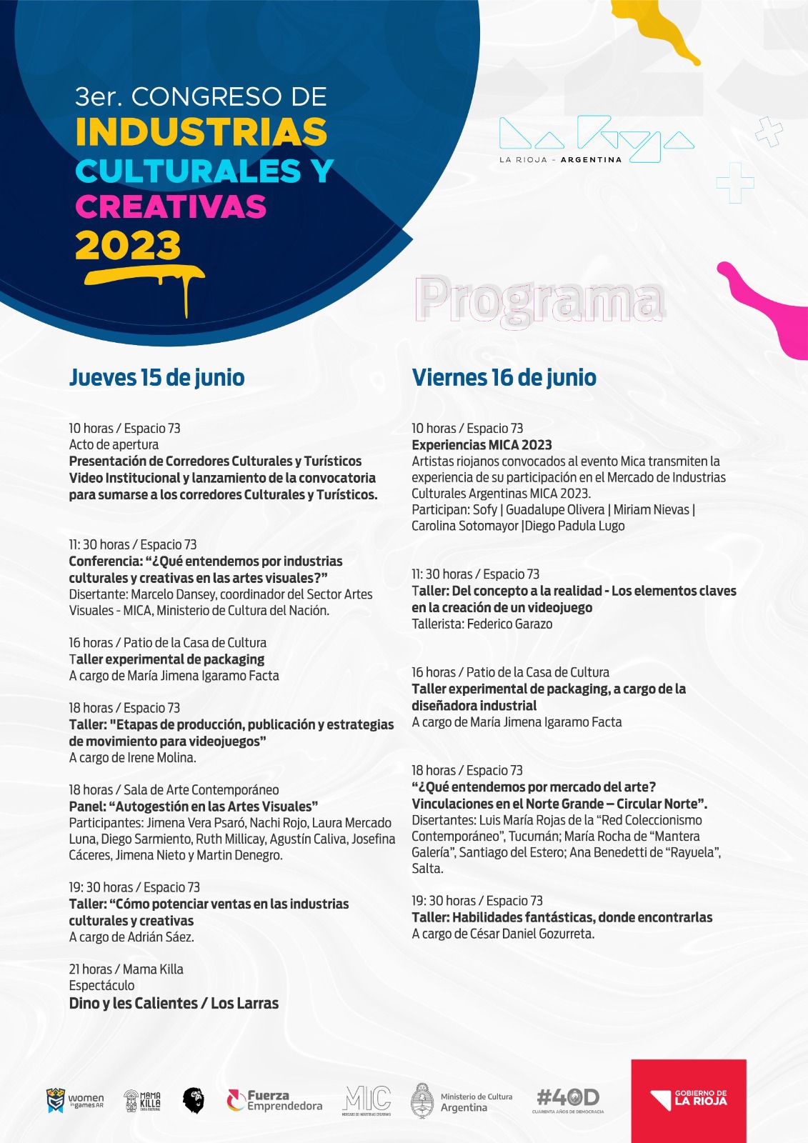 Según indicó, dicha propuesta tiene como objetivo impulsar al sector productivo cultural y creativo mediante su respaldo, circulación y sostenibilidad. Se realizará los días 15 y 16 de junio y la agenda completa de actividades puede consultarse en www.culturalarioja.gob.ar.