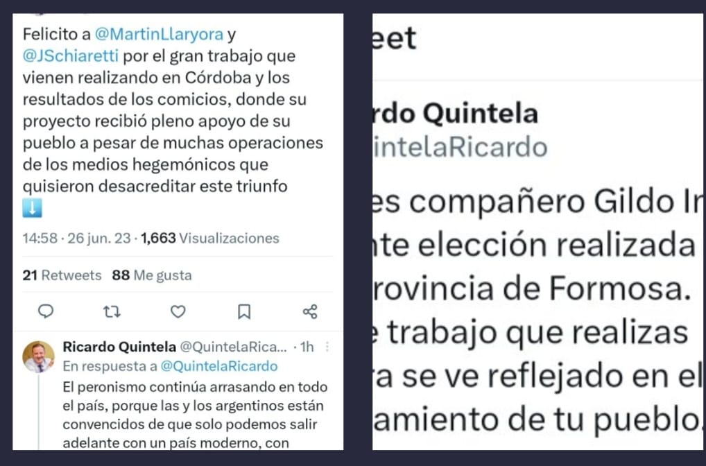 Quintela saludo a Llaryora e Insfran por las elecciones del domingo