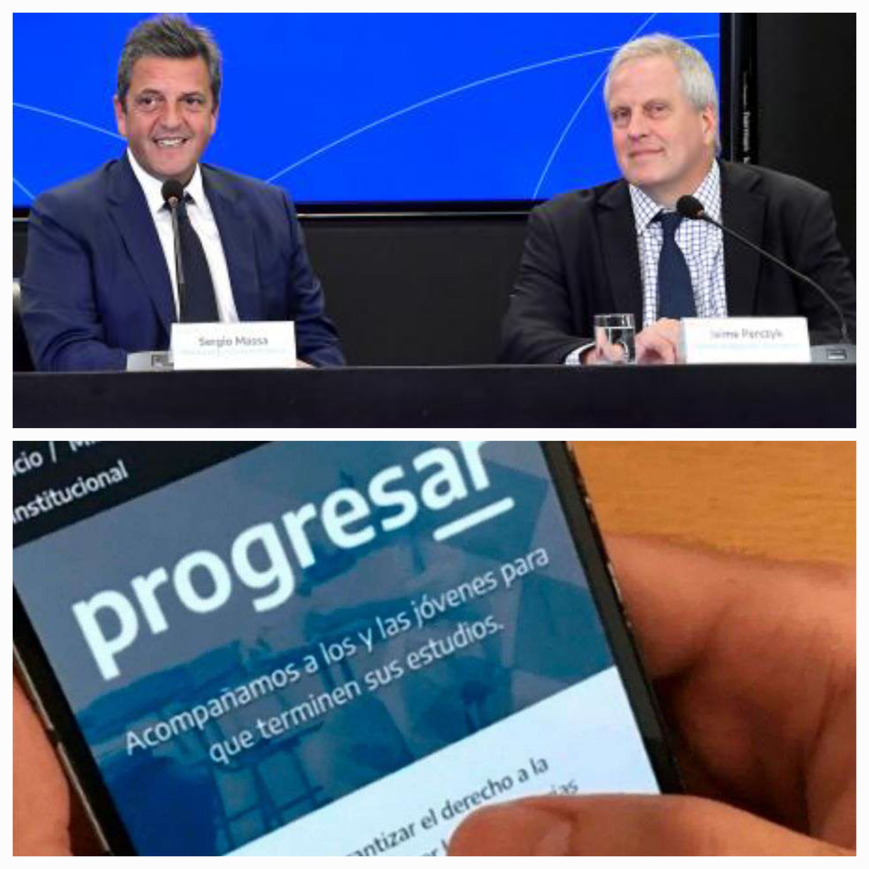 El ministro de Economía y precandidato presidencial de Unión por la Patria (UxP) Sergio Massa realizó junto con su par de Educación, Jaime Perczyk, anuncios de mejoras en las becas Progresar y del lanzamiento de un programa de reconversión laboral con capacitación tecnológica.