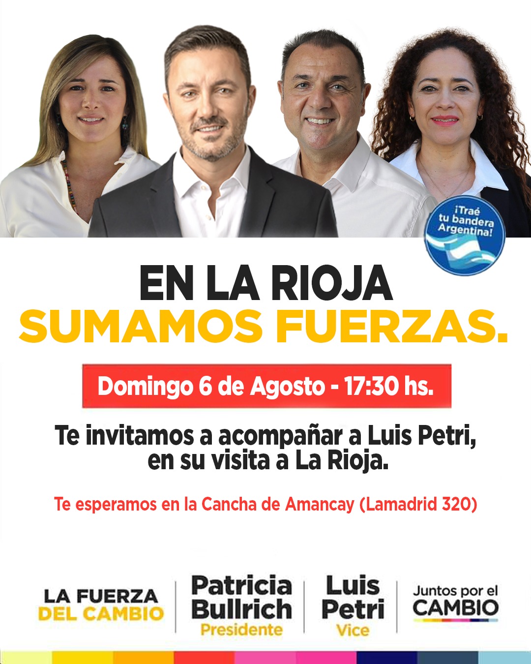 Este domingo 6 Llega arribara a nuestra provincia el mendocino Luis Petri, quien acompaña a Patricia Bullrich en la fórmula de precandidatos presidenciales para las PASO del 13 de agosto.