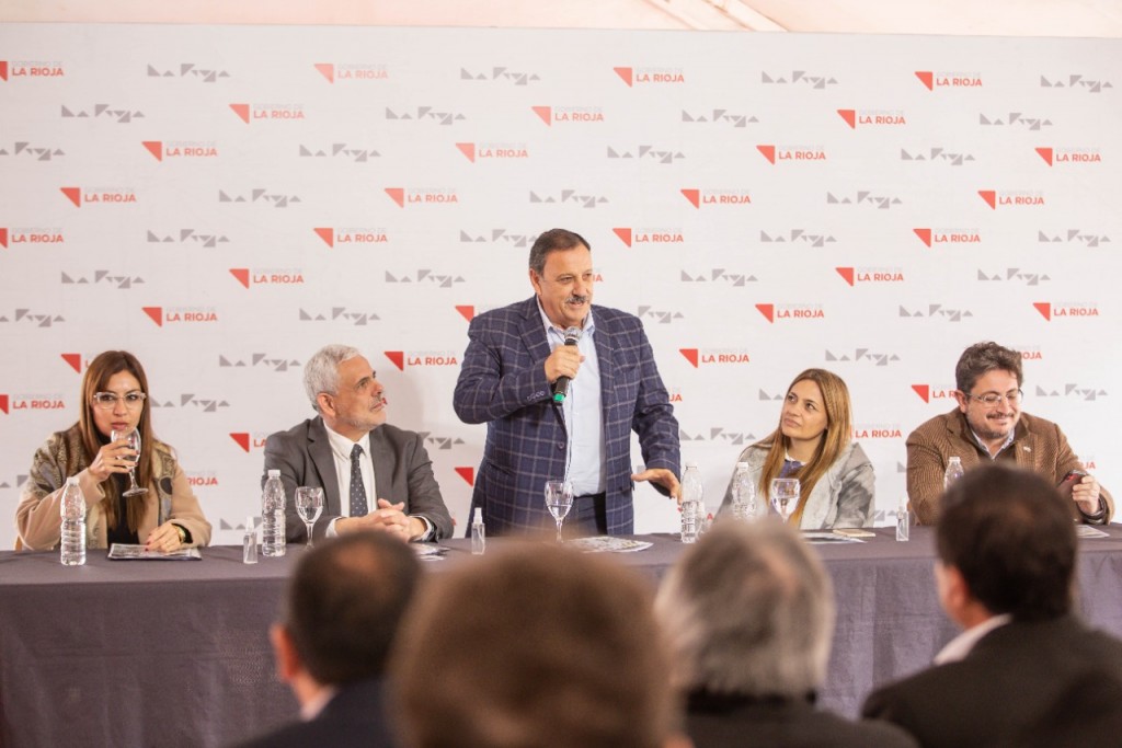El gobernador Ricardo Quintela encabezó, este lunes la firma de convenio con el Superior Tribunal de Justicia y con municipios del interior, para la construcción de nuevos edificios de Juzgados de Paz Lego en las localidades de Ulapes, Milagro, Guandacol y Vinchina.