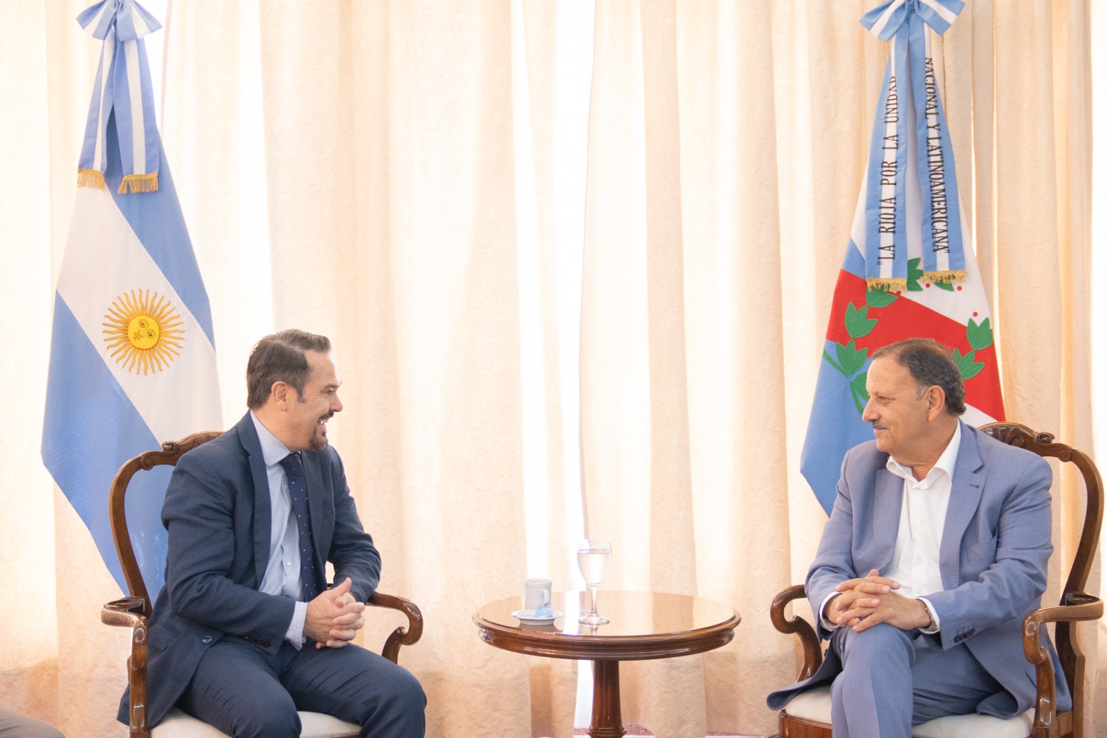 El gobernador Ricardo Quintela recibió en la jornada de este martes, al embajador de Francia en Argentina, Romain Nadal, junto a su comitiva, que se encuentra de visita con el propósito de conocer el potencial agrícola e industrial y tejer posibles alianzas de cooperación y acciones conjuntas entre ambos gobiernos.