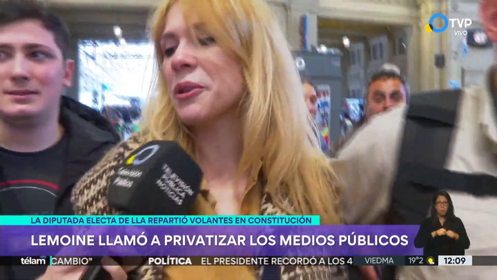 "Vamos a cerrar la TV Pública, vamos a privatizar la TV Pública. Los medios públicos se van a privatizar, así que procurá ser una buena trabajadora", aseguró Lemoine en declaraciones a una cronista del canal público, mientras realizaba una recorrida por la estación Constitución.