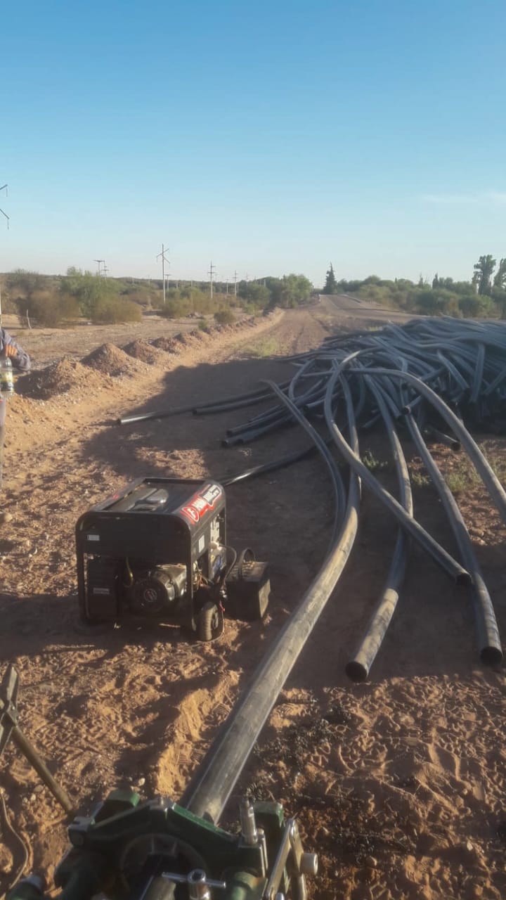 Actualmente la cuadrilla se encuentra desarrollando la fusión de la cañería de Ø 90 mm que compre del acueducto. Asimismo, los trabajos contemplan reemplazar la bomba que impulsa el agua hasta la planta potabilizadora “La Loma” por otra de mayor potencia. Como así también, se realizan mejoras en el tablero para modificar su funcionamiento de forma automática.
