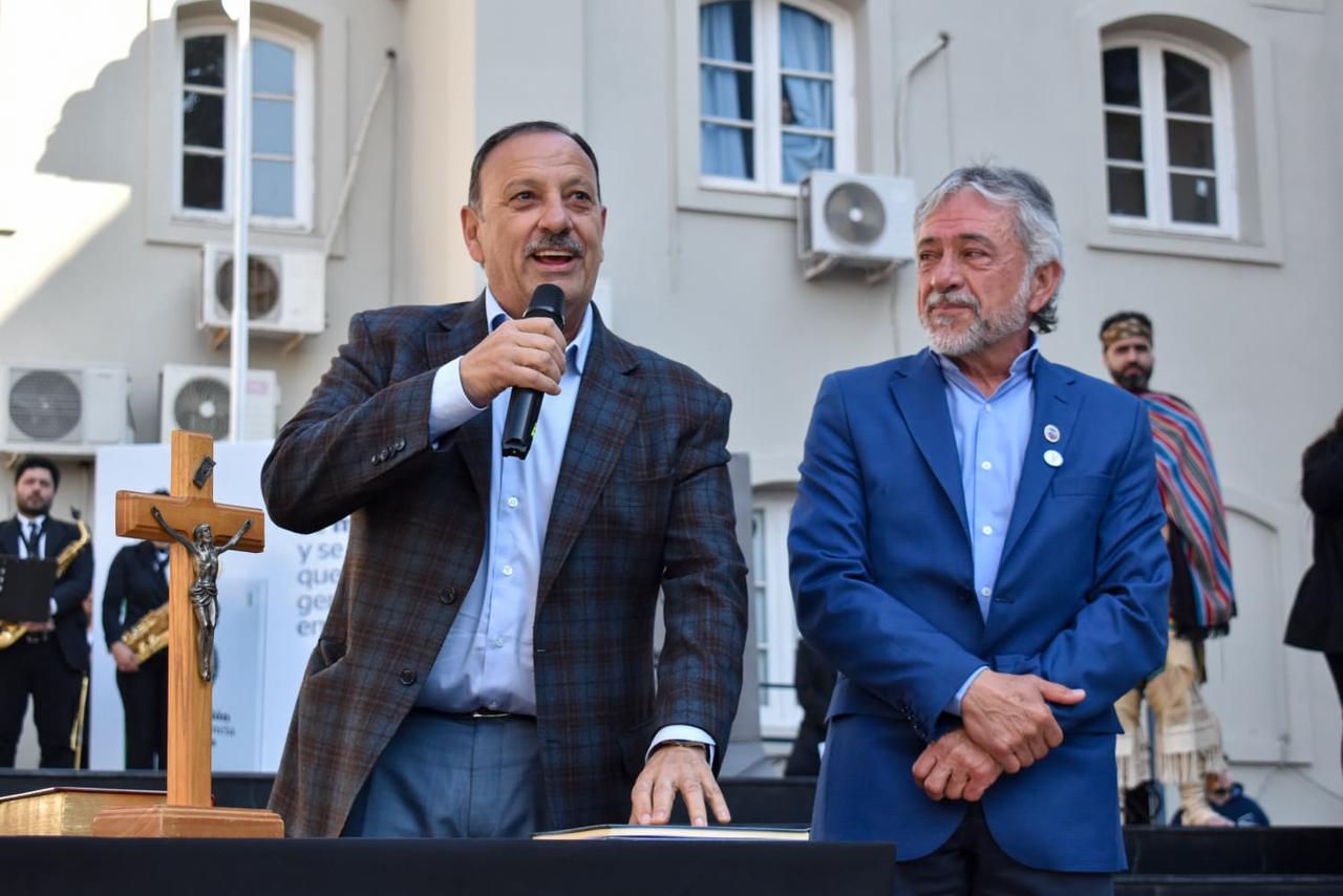 El mandatario provincial hizo uso de la palabra durante el acto y recordó sus años frente a la Intendencia de la Capital, refiriendo que “esta es mi segunda casa, la que me forjó, la que me enseñó y con la que compartí buenos y malos momentos de luchas, de reivindicaciones y alegrías compartidas”. “Somos la provincia más humilde de la Argentina y le dijimos que no al presidente: y en un acto de defensa de los intereses de las riojanas y los riojanos, tomamos la decisión de no incrementar la energía en nuestra provincia, de no incrementar el boleto del transporte público de pasajeros”, expresó y anunció que este servicio pasará el próximo año al Municipio, que es lo que corresponde”. “Hay otro camino posible para gobernar la Argentina, con humanidad, con pan, techo, trabajo, transporte público y trabajo digno”, enfatizó. “Esto es posible y queremos demostrarlo a lo largo y ancho del país”, agregó. “Van a venir ataques a la provincia, pero tenemos la firmeza y valentía para enfrentarlos, porque serán ataques de propios y de extraños”, afirmó. Agregó: “estamos a la vanguardia y con orgullo podemos decirlo”. “Esta Constitución que la levantan con orgullo, espera que le den forma y calidad, contenido a cada uno de los artículos, porque esa Renta Básica Universal es para los sectores vulnerables de la sociedad, porque todos necesitan un trabajo digno, y tenemos que sacarlos del estado de mendicidad, de buscar para un remedio, o para llevar el pan a sus hijos”, subrayó. Y continuó: “Me van a atacar, pero estoy dispuesto a recibir esos ataques. Ya tenemos la inspección, y los auditores en el Banco de la Provincia para ver si respalda los bonos de cancelación de deuda, y a pesar de lo que dicen, brutos e ignorantes, nosotros somos previsibles, y desde que llegamos a esta municipalidad nunca dejamos de pagar los salarios, ni nos atrasamos con los programas, porque siempre tuvimos un ahorro para el respaldo de nuestra gente”. “Molesta porque hay una fortaleza que se está construyendo para demostrar que hay un movimiento que incluye a todos, que no excluye, que es el peronismo”, señaló el mandatario. *BOCADE* “Tomamos decisiones cada segundo y tomé la decisión de sacar un instrumento financiero, que son los Bonos de Cancelación de Deuda, denominados Chachos que son atacados por la oposición, a la que les pido, les ruego, que nos acompañen en la defensa de los intereses de nuestra gente, porque no son decisiones irresponsables. Tengo la responsabilidad de que nuestra gente no pierda el poder adquisitivo de sus salarios”, sentenció. “Hemos demostrado que se puede hacer un billete de 1mil, 2 mil, 5 mil, 10 mil, 20 mil, y 50 mil, y no es una moneda, porque somos respetuosos de las normativas, sino que es un bono, que tiene intereses, y quien lo conserve hasta el final de este año va a percibir un 17 por ciento de aumento, que es un plazo más”, indicó. Jura de las autoridades municipales y vecinos de Capital En ese contexto, el intendente Armando Molina convocó a funcionarios del Ejecutivo municipal, a todas las áreas y a las y los vecinos de la Ciudad Capital, a la jura de la nueva Constitución. Acto seguido, se convocó a personal de todas las áreas, a prestar juramento de la nueva Constitución, y requirió a Escribanía General, a notarios, a la jura de la reformada Carta Magna. Molina destacó la presencia del gobernador Ricardo Quintela junto a convencionales constituyentes, y tomó juramento a secretarias y secretarios; subsecretarias y subsecretarios; directoras y directores; coordinadoras y coordinadores y, promotoras y promotores. “Vista la reforma de la Constitución proclamada y sancionada, en mi calidad de intendente de la Ciudad de Todos los Santos de la Nueva Rioja, vengo a tomar juramento en su calidad de funcionarias y funcionarios del municipio Capital. Una nueva Constitución que rige las relaciones y delimita derechos y obligaciones a los habitantes de nuestra Provincia y se inspira en lo más luminoso y sagrado de nuestra identidad riojana”, expresó Molina. “Se vuelve imperioso que asumamos el compromiso ciudadano y democrático, de defender y conocer los postulados, principios y valores de este nuevo modelo de organización social y político que dicho texto expresa en nuestro nombre”, indicó al tomar el juramento de sus conciudadanos. Seguidamente, el jefe comunal tomó juramento a instituciones intermedias, y destacó la presencia de autoridades de Centros Vecinales. En su discurso, Molina dijo que “estamos cumpliendo con esta obligación y asumiendo un compromiso”. Recordó que en 2019, cuando asumía Ricardo Quintela, “se comenzaban a desandar ideas y sueños, y en esas primeras nóminas de objetivos se encontraba el torcer el rumbo de la Provincia, rigiéndose en una aspiración constitucional, reformada, y que decían que debíamos respetar un proyecto de provincia. Quería hacer un viraje, y los virajes en la vida de este gobernador estaban acostumbrados”. “El primer viraje que hizo Quintela fue que cada familia tenga la posibilidad de tener su propia casa. Y hoy, desde aquel sueño, es una de las provincias que más propietarios tiene. Es una decisión, un viraje político que tomó el gobernador”, remarcó. “Esta Constitución rompe la inercia que tenía el proyecto político en La Rioja. (…) Esta Constitución debe ser leída, comprendida y militada porque es un giro hacia el bienestar social, con más y mejores derechos”, apuntó. “Lo nuestro es bache, bombita y basura sin exclusiones. Es lo que nos han encomendado. Nosotros nos vamos a encargar de la ciudad Capital de La Rioja, y estamos detrás de las banderas del Pan, Techo y Trabajo; Agua, Energía y Conectividad”, aseveró y resaltó el texto constitucional que significa además, la incorporación de la Renta Básica Universal como un derecho para todas y todos los riojanos. Más derechos para