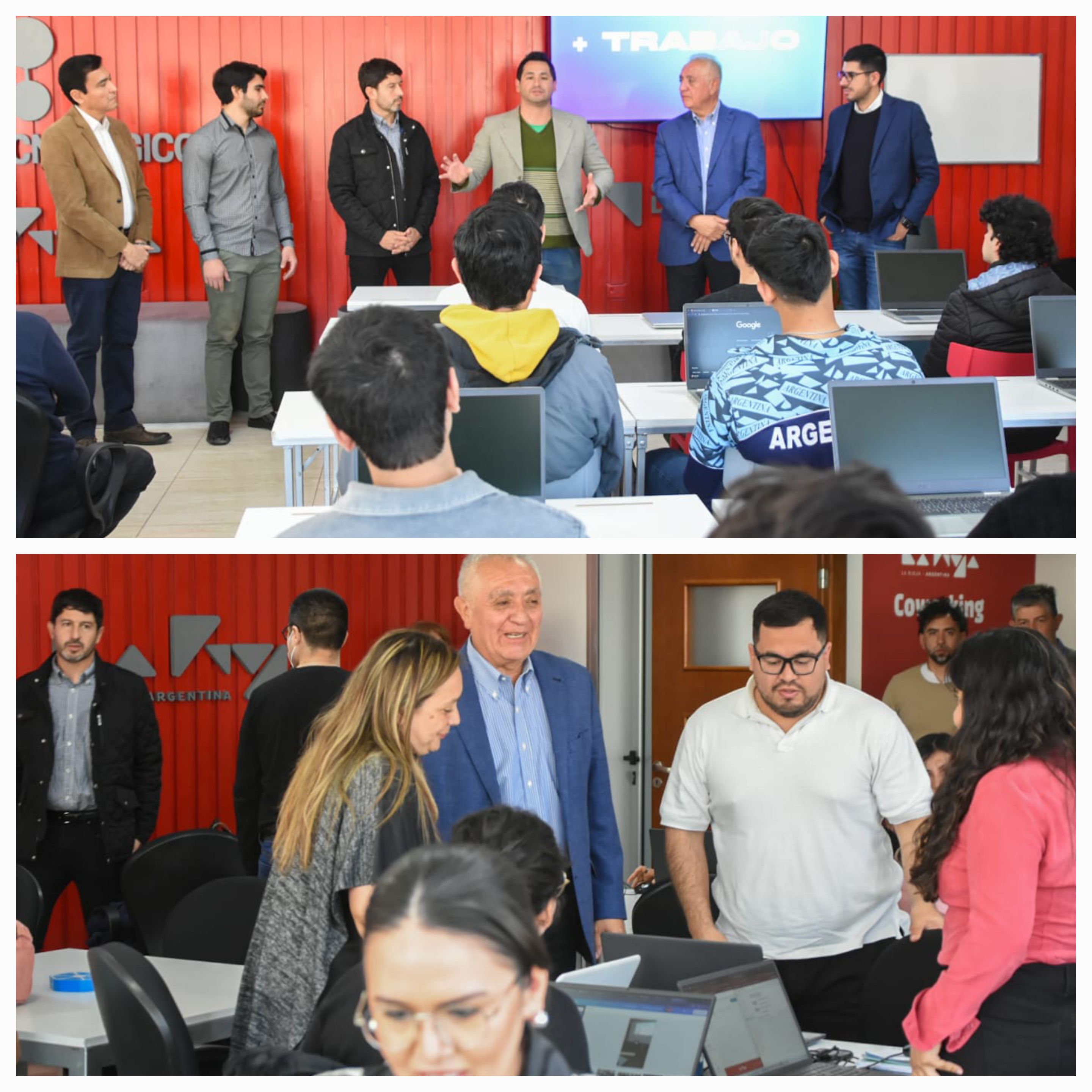 Vergara fue recibido por su par de Trabajo, Empleo e Industria, Federico Bazán, el secretario de Ciencia y Tecnología, Hugo Vera y el diputado Raúl Cabral, quienes dieron la bienvenida a las y los alumnos de los cursos de formación que llevará adelante el Polo durante seis meses con importante salida laboral.